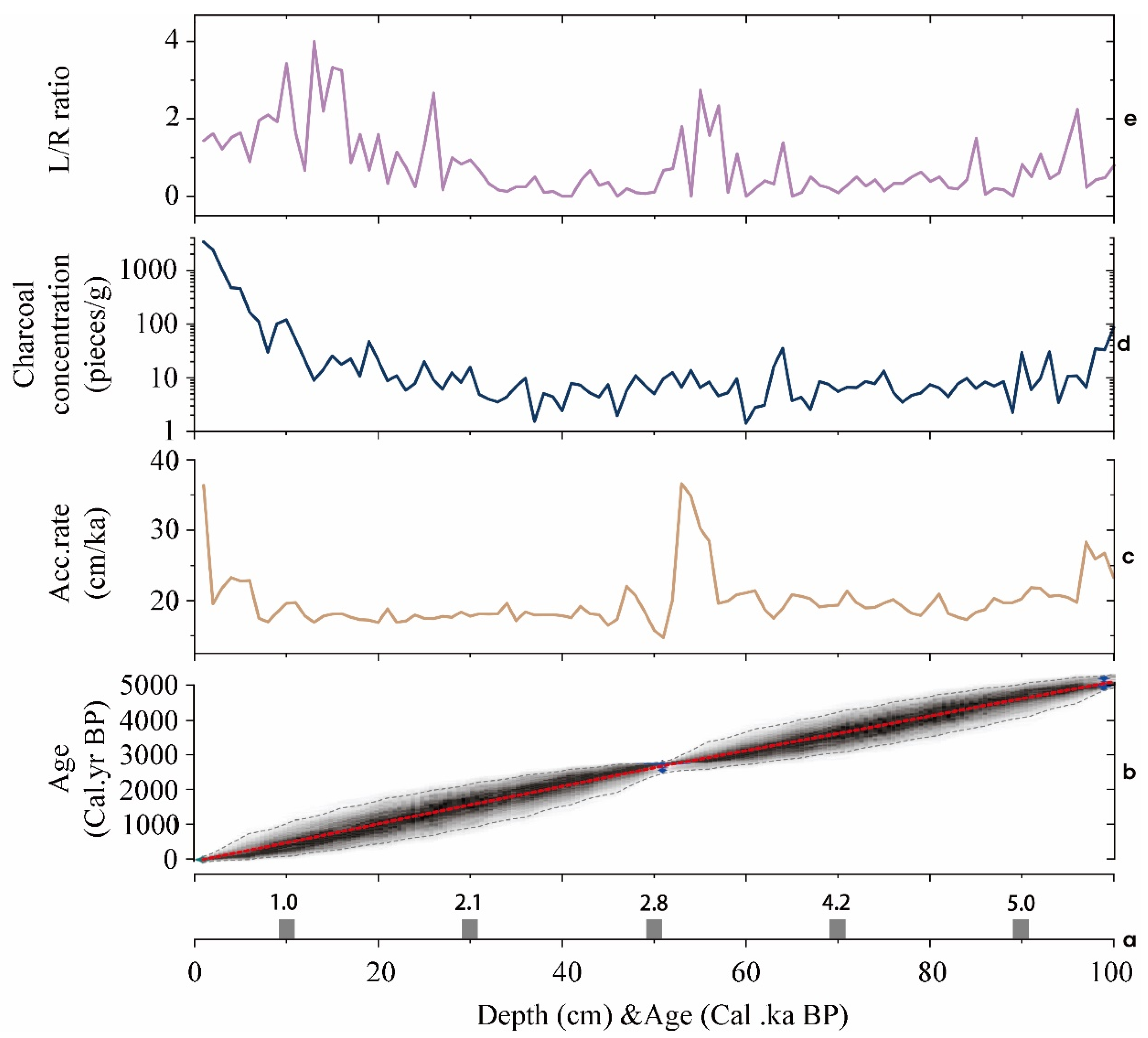- Clark, J.S. Particle motion and the theory of charcoal analysis: Source area, transport, deposition, and sampling. Quat. Res. 1988, 30, 67–80. [Google Scholar] [CrossRef]
