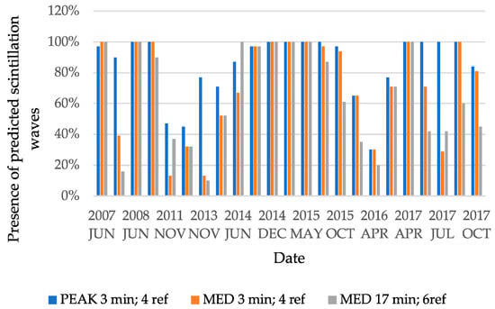 Figure 4 depicts scintillation events in July 2016. On the surface, it is hard to say whether scintillation waves recurred daily during the month.