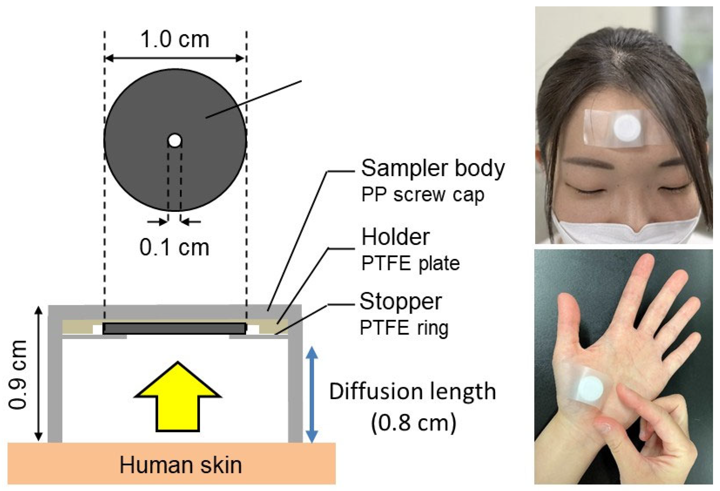 - Furukawa, S.; Sekine, Y.; Kimura, K.; Umezawa, K.; Asai, S.; Miyachi, H. Simultaneous and multi-point measurement of ammonia emanating from human skin surface for the estimation of whole body dermal emission rate. J. Chromatogr. B Analyt. Technol. Biomed. Life Sci. 2017, 1053, 60–64. [Google Scholar] [CrossRef] [PubMed]