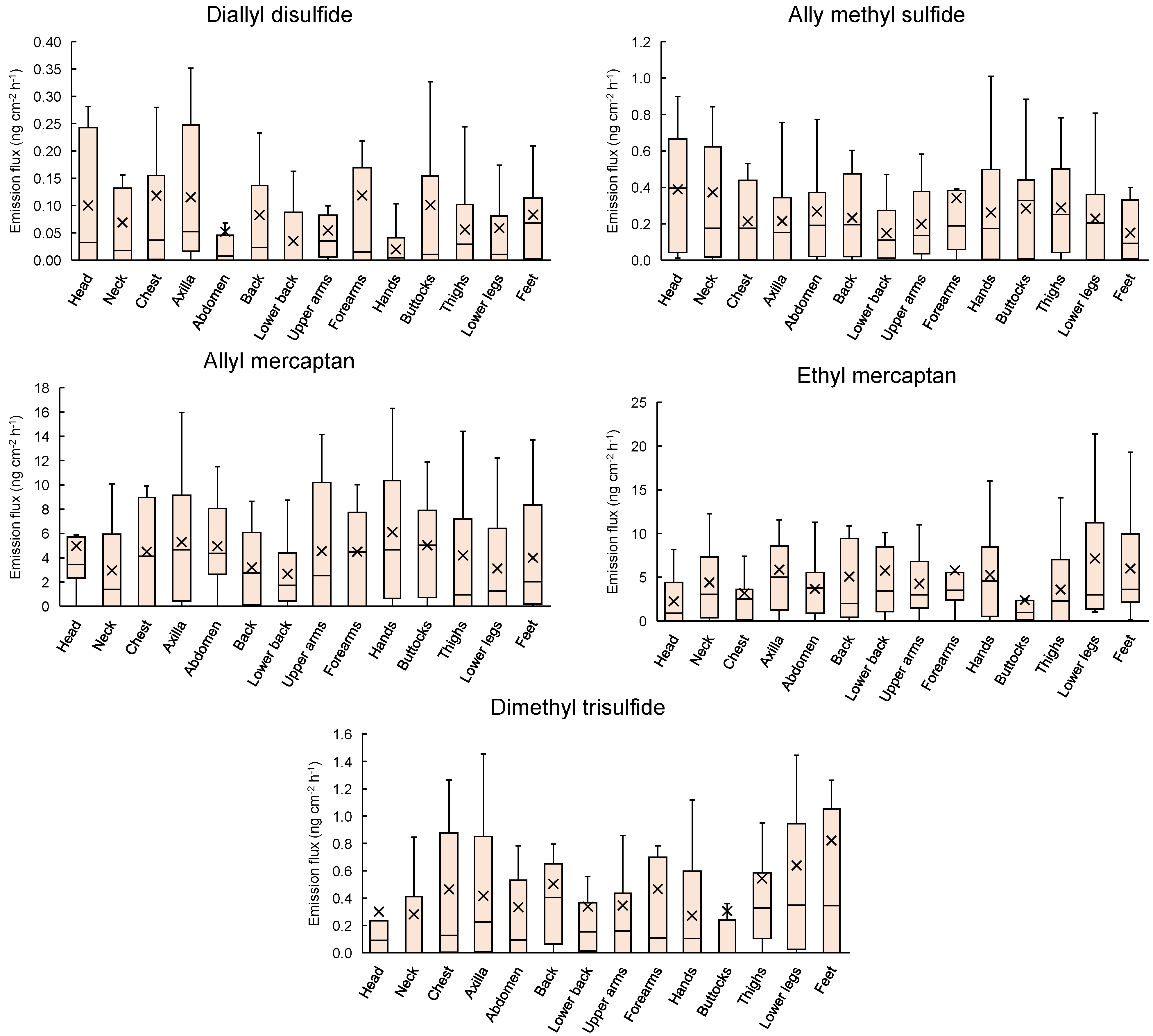 2.2. Regional and Whole-Body Dermal Emission Rate of VSCs