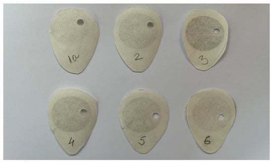 Filter papers from a Bosch opacimeter—the numbers written on the filter paper discs (1a, 2, 3, 4, 5, 6) represent the sequential numbering of the experimental tests.
