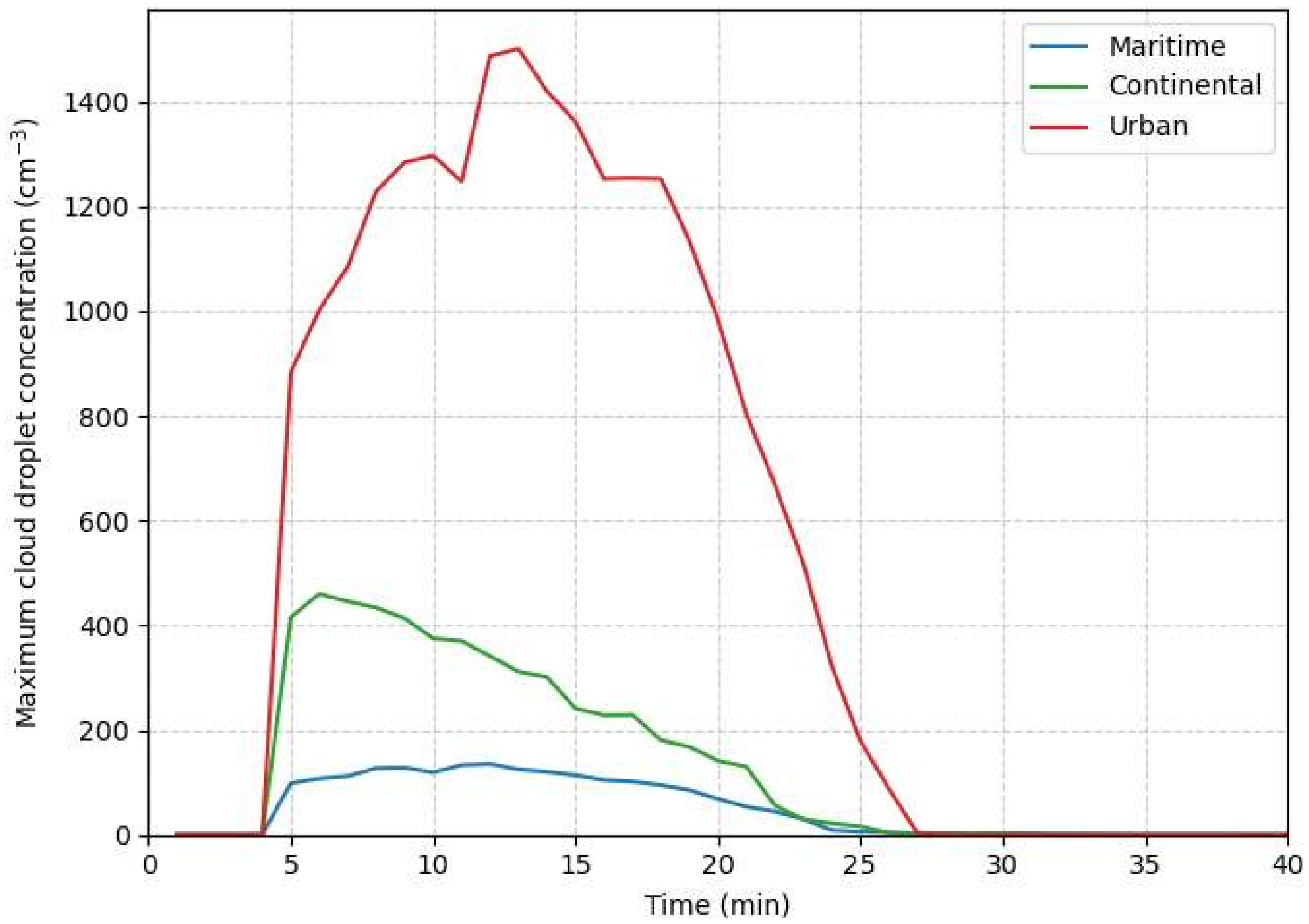 4.5. Dependence of the Critical Seeding Diameter on Background Aerosol Regime