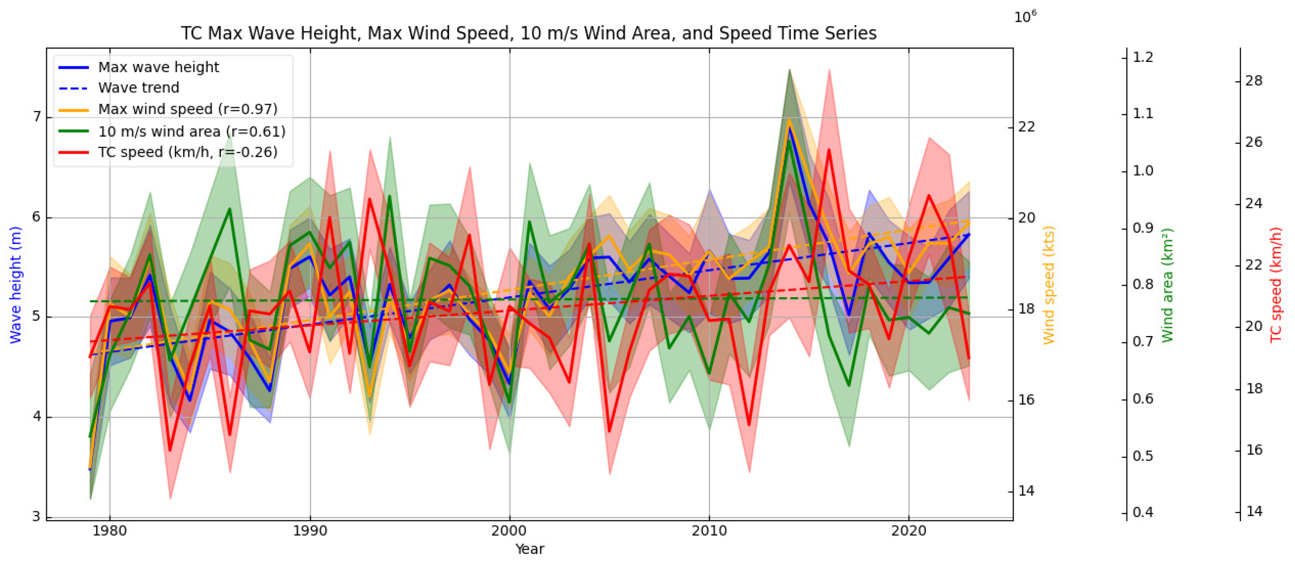 - Shi, J.; Feng, X.; Toumi, R.; Zhang, C.; Hodges, K.-I.; Tao, A.; Zhang, W.; Zhang, J. Global increase in tropical cyclone ocean surface waves. Nat. Commun. 2024, 15, 174. [Google Scholar] [CrossRef] [PubMed]
