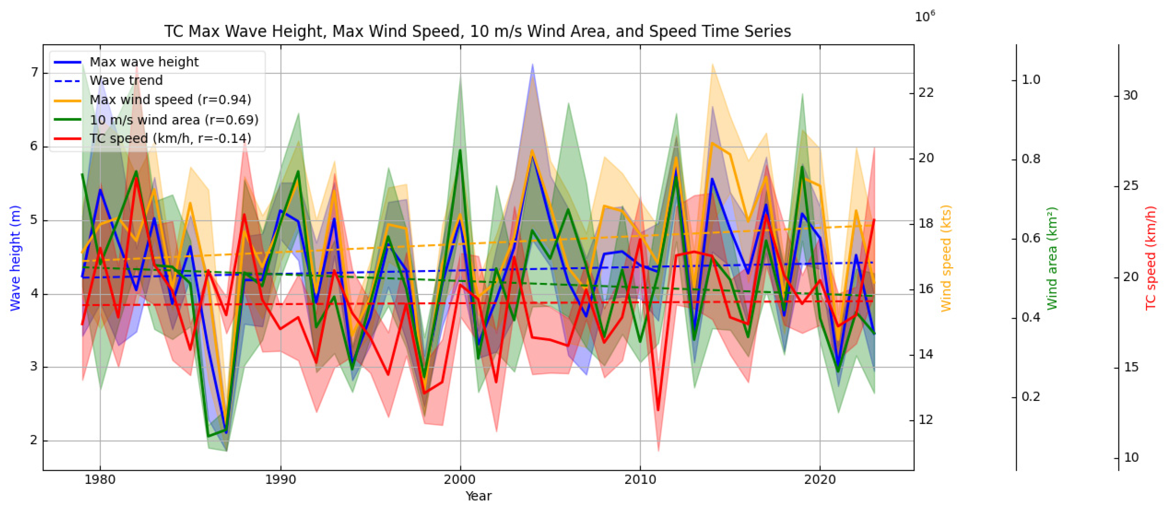 - Timmermans, B.; Stone, D.; Wehner, M.; Krishnan, H. Impact of tropical cyclones on modeled extreme wind-wave climate. Geophys. Res. Lett. 2017, 44, 1393–1401. [Google Scholar] [CrossRef]