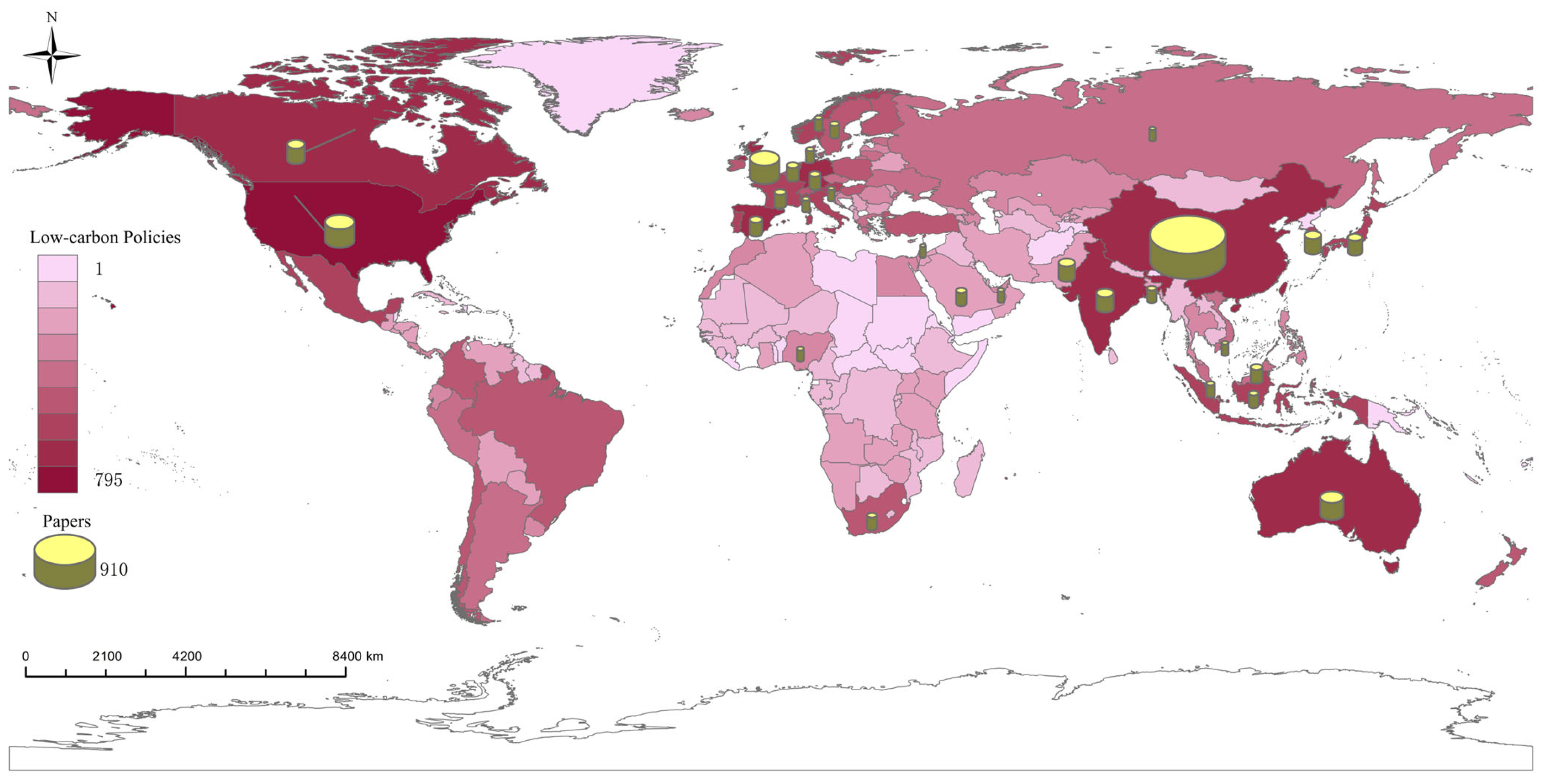 3.1.1. Spatial-Tempo Analysis of Publications and Policies from Different Countries