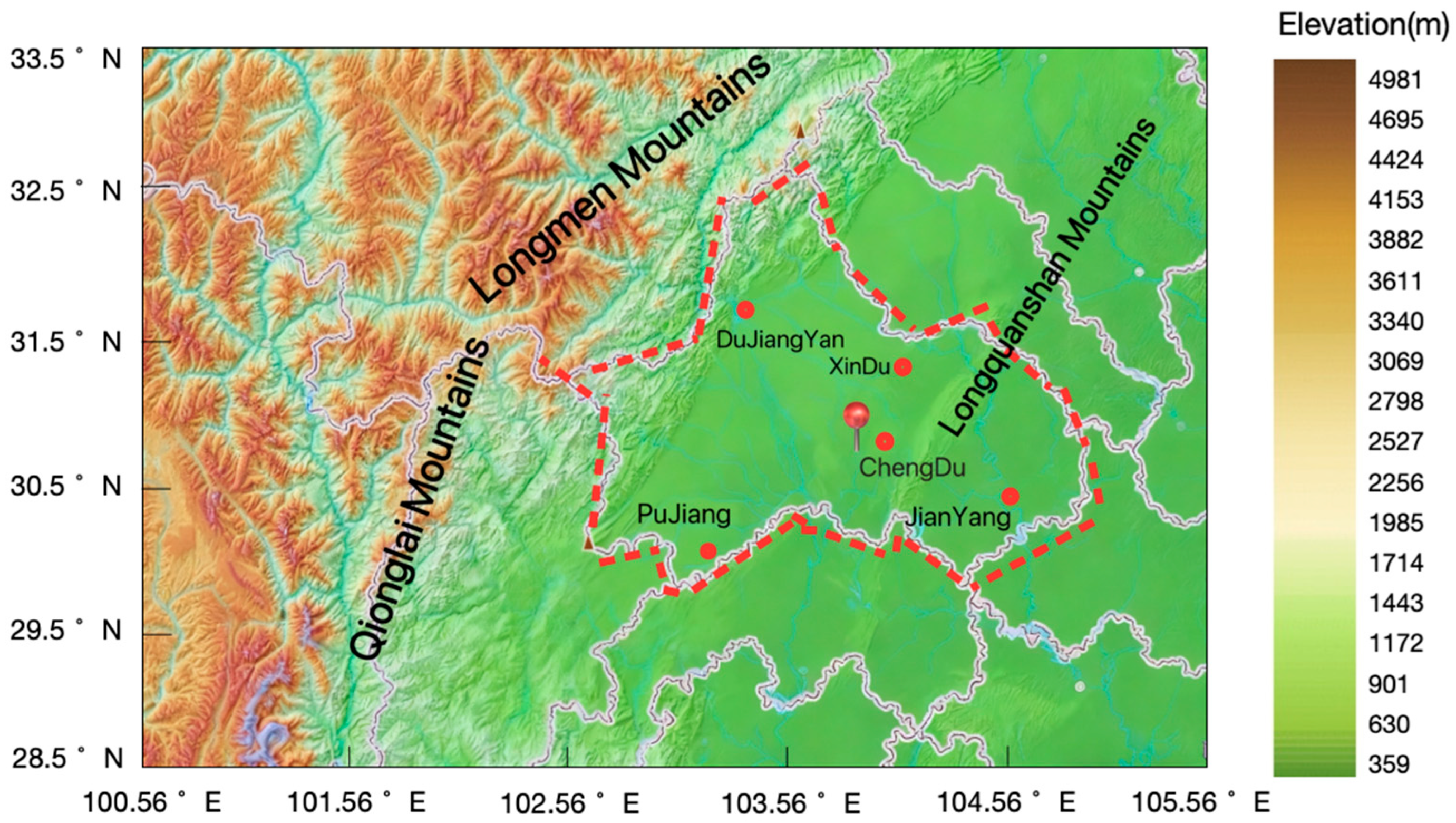 - Chengdu Bureau of Statistics. Chengdu Statistical Yearbooks 2003–2024; China Statistics Press: Beijing, China, 2024.