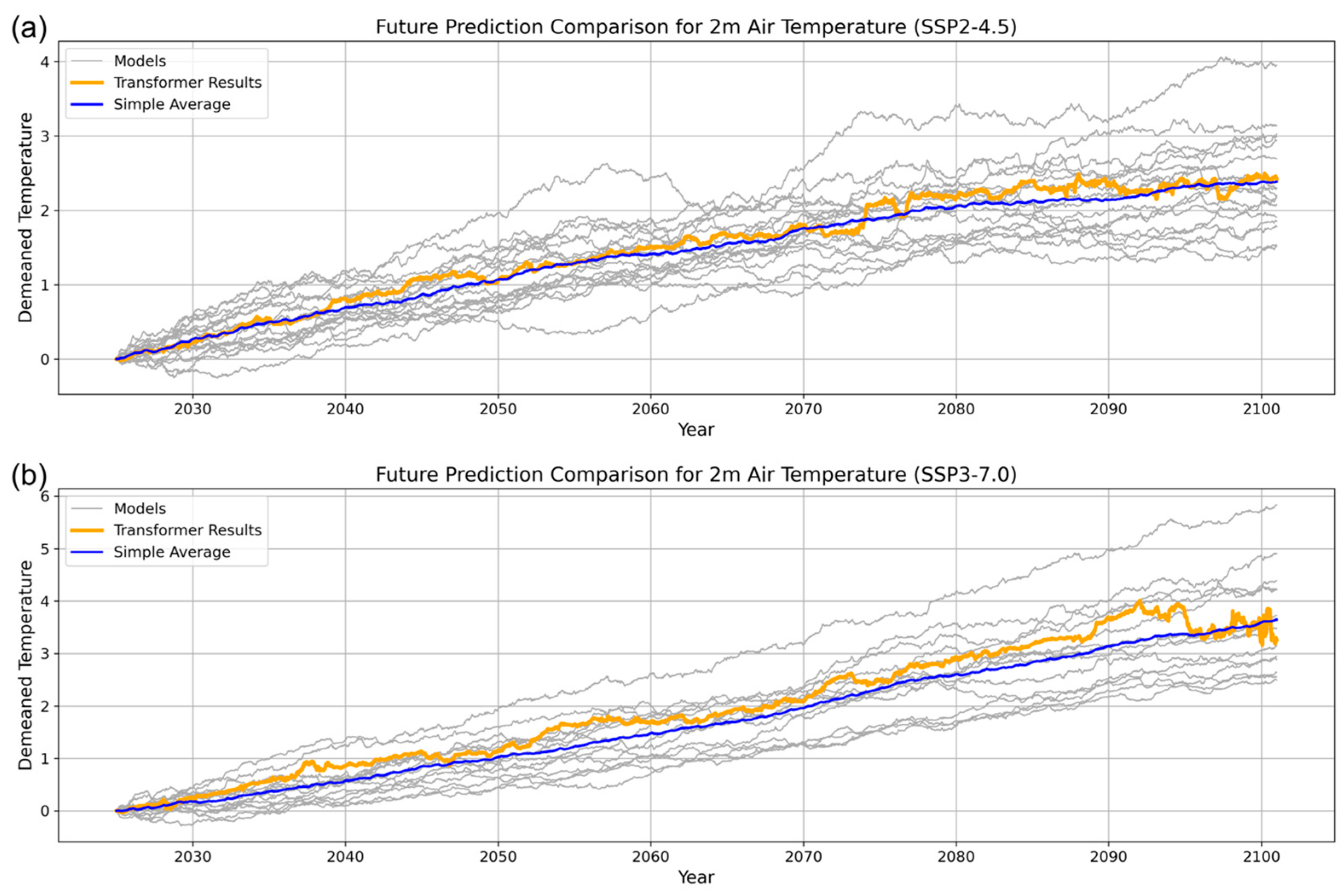 3.2. Projected Temperature Changes
