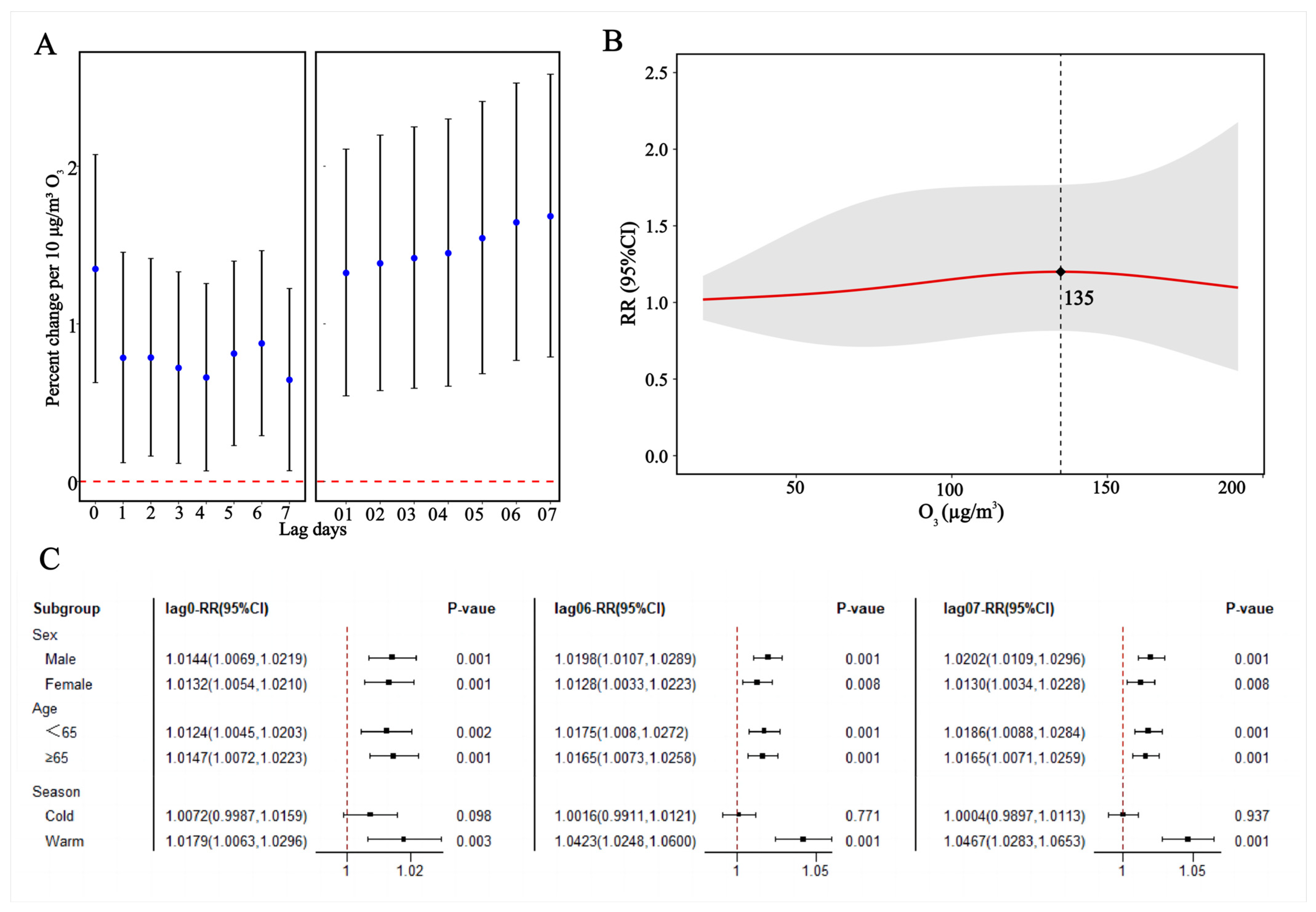 3.2. Association of O3 Exposure with ASCVD Outpatient Visits