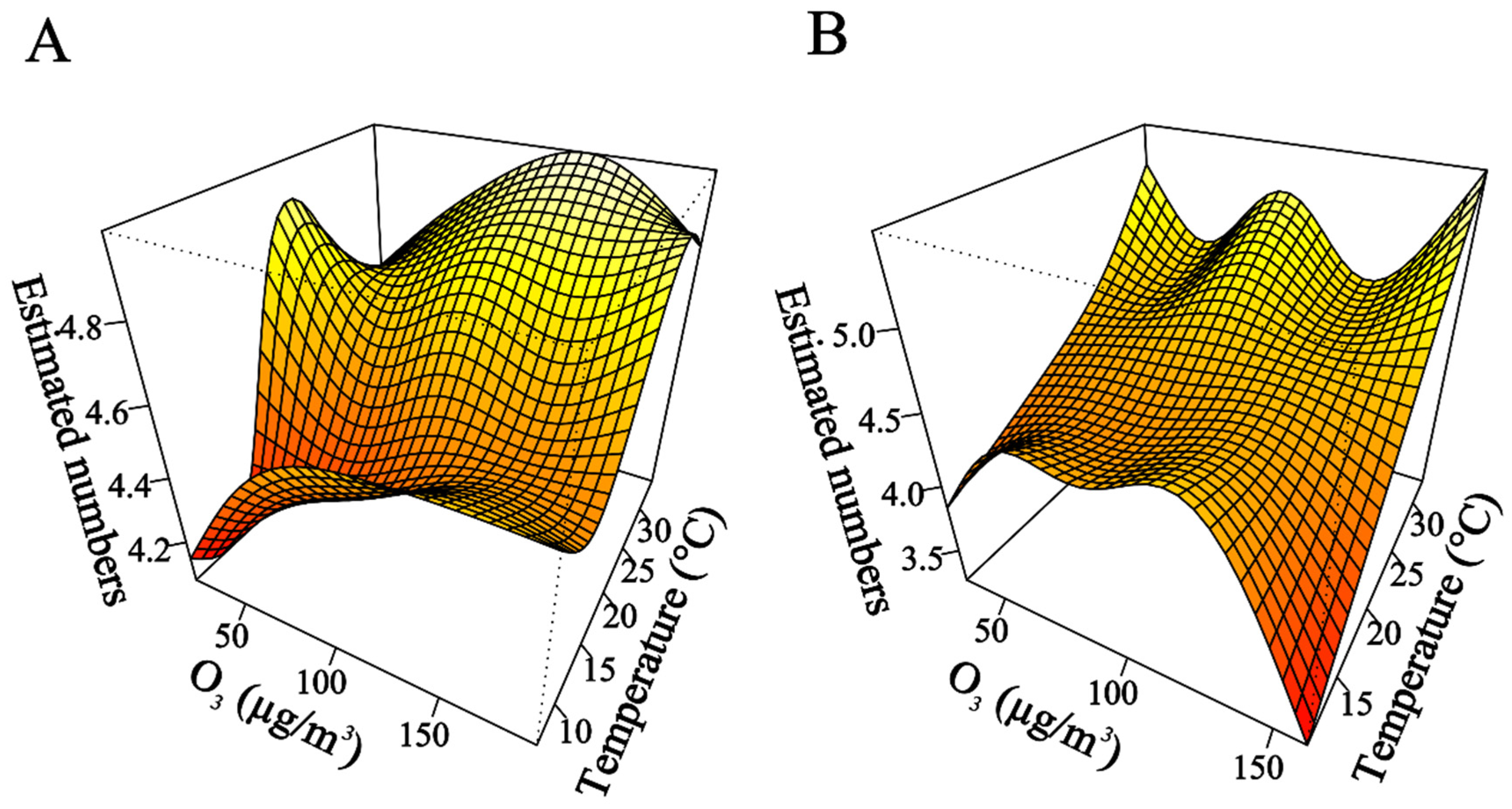 - Chen, R.; Cai, J.; Meng, X.; Kim, H.; Honda, Y.; Guo, Y.L.; Samoli, E.; Yang, X.; Kan, H. Ozone and daily mortality rate in 21 cities of East Asia: How does season modify the association? Am. J. Epidemiol. 2014, 180, 729–736. [Google Scholar] [CrossRef]