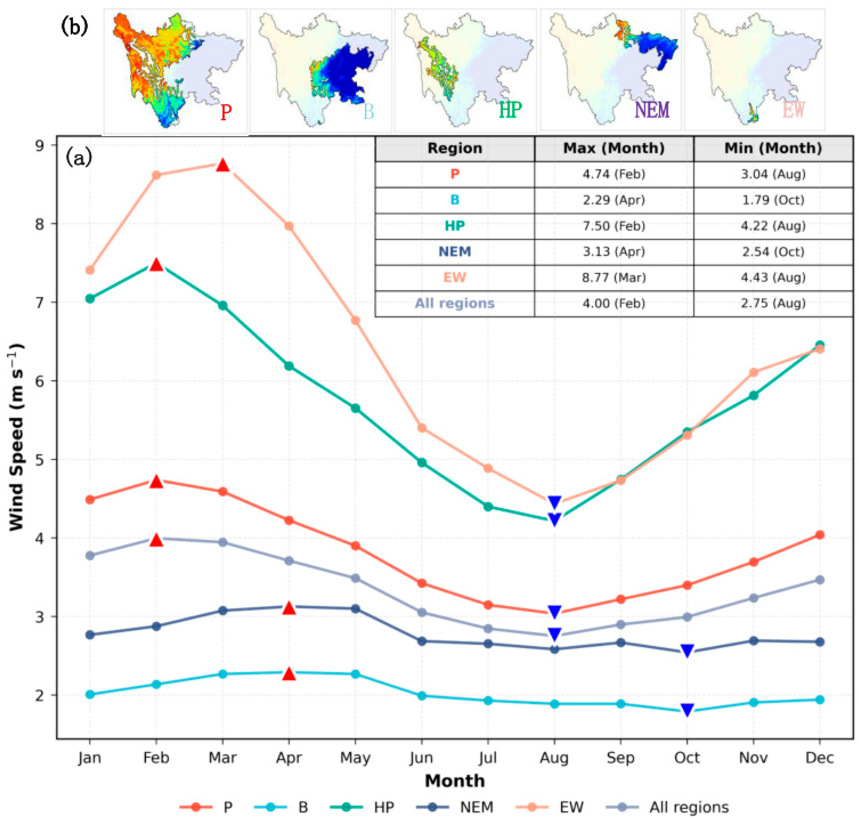 | B | Basin Region | The low-lying Sichuan Basin characterized by low wind speeds. |