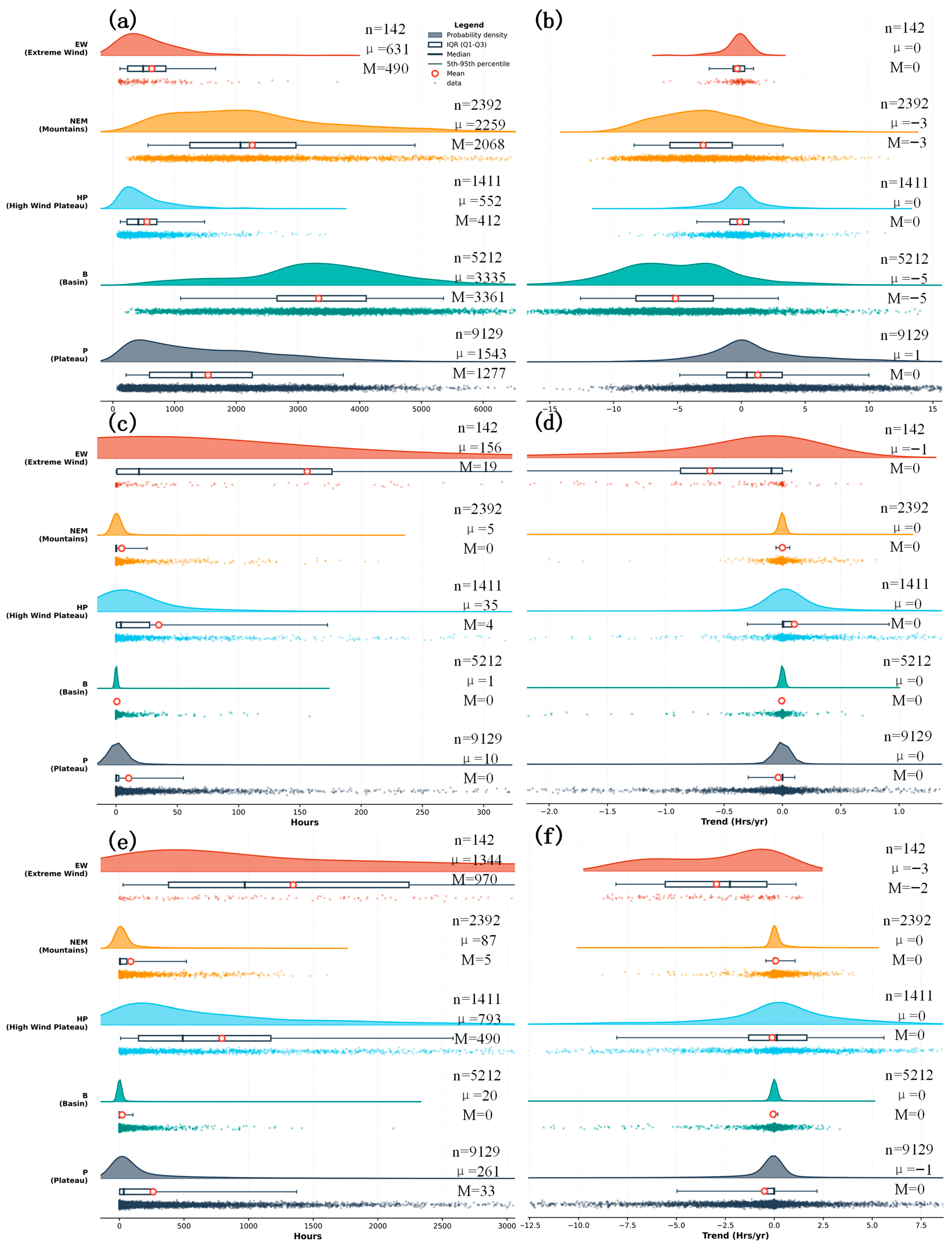 - Long-term evolution trend analysis: Apply nonparametric Mann–Kendall test to determine trend significance for annual time series at each grid cell, and use Sen’s slope estimator to quantify trend magnitude. Violin plots similarly display trend distribution characteristics across zones.