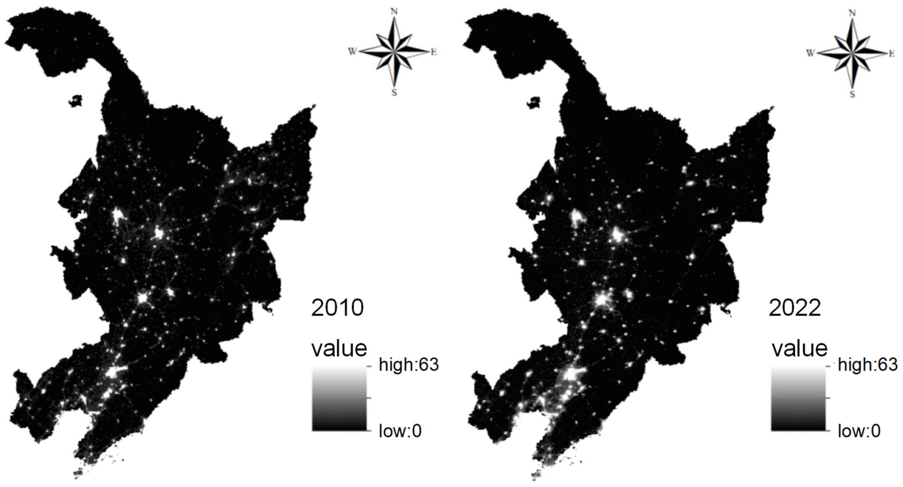 - Yang, Y.; Wu, J.; Wang, Y.; Huang, Q.; He, C. Quantifying Spatiotemporal Patterns of Shrinking Cities in Urbanizing China: A Novel Approach Based on Time-Series Nighttime Light Data. Cities 2021, 118, 103346. [Google Scholar] [CrossRef]