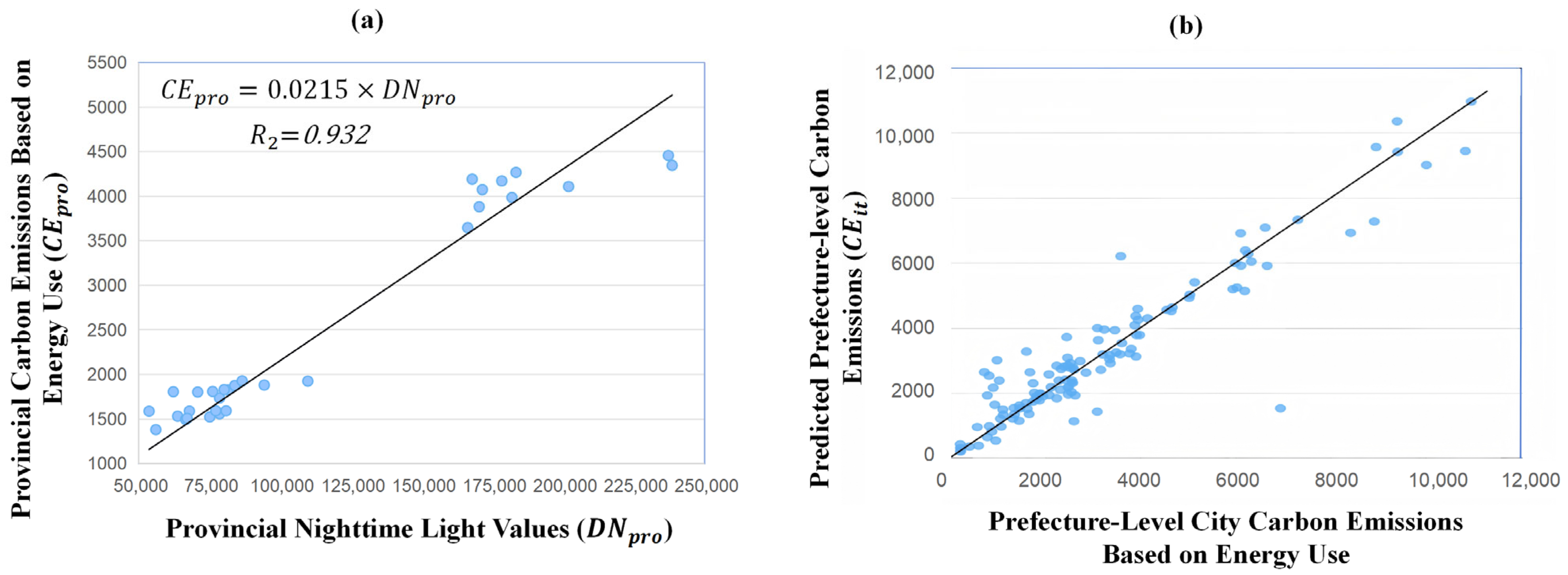- Guo, W.; Li, Y.; Li, P.; Zhao, X.; Zhang, J. Using a combination of nighttime light and MODIS data to estimate spatiotemporal patterns of CO2 emissions at multiple scales. Sci. Total Environ. 2022, 848, 157630. [Google Scholar] [CrossRef]