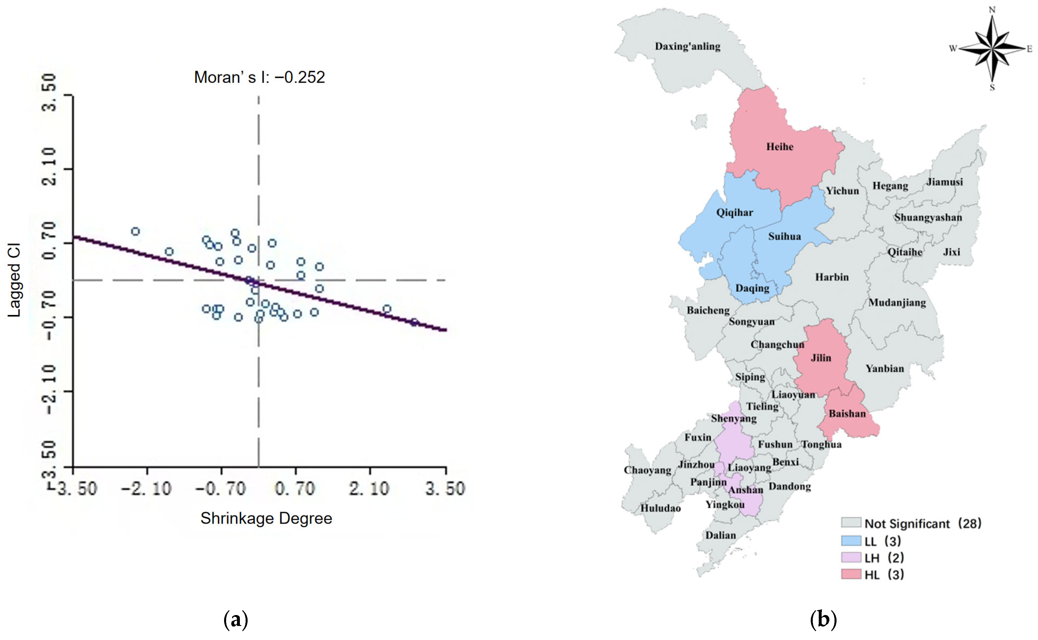 3.3.5. The Spatial Correlation Between Urban Shrinkage and Carbon Emissions