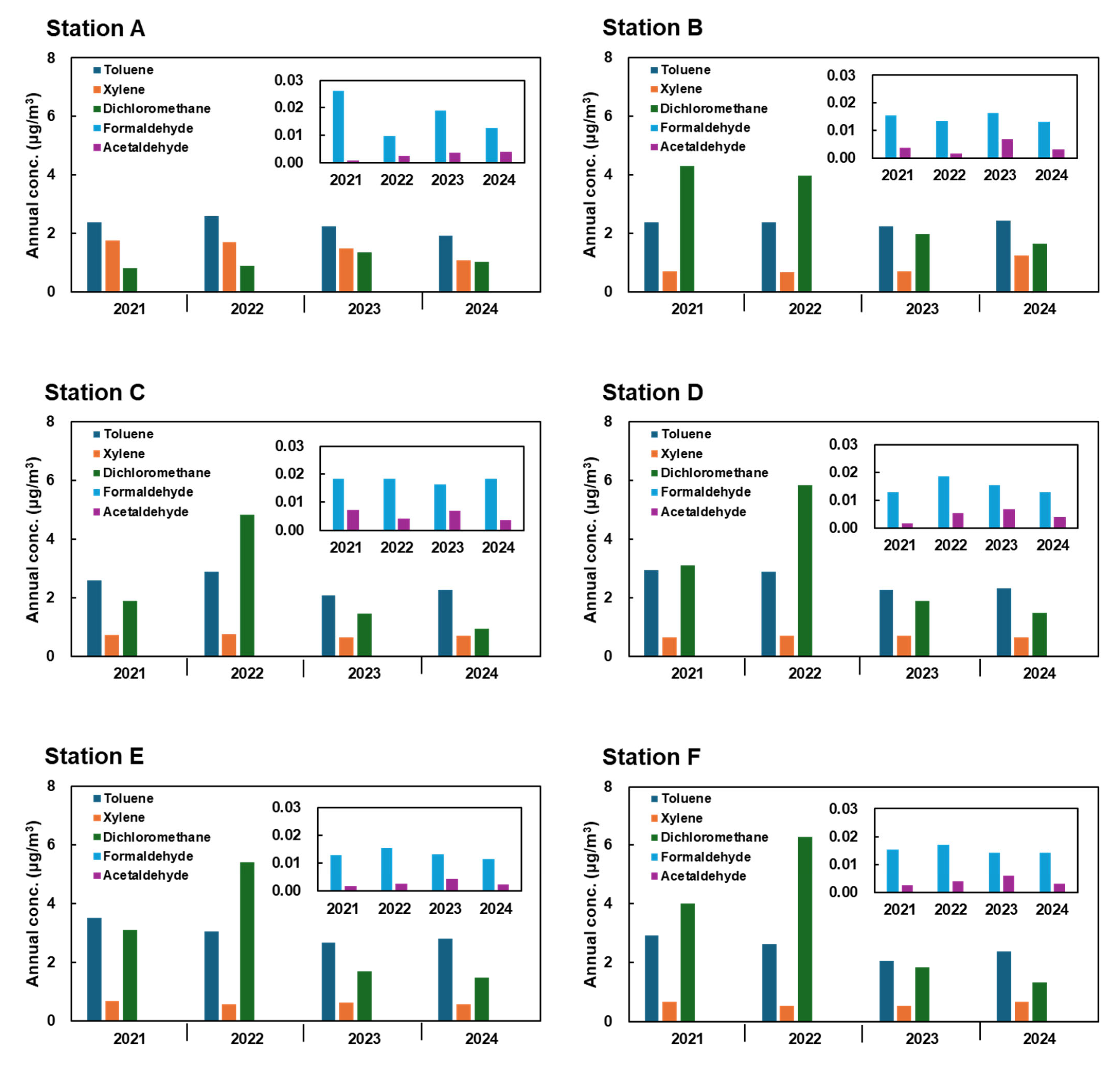 - Annual averages: An annual mean was reported only when at least 85% of the scheduled yearly samples were valid and the data coverage extended across a minimum of three seasons. Stations that did not satisfy both criteria were excluded from annual average reporting.
