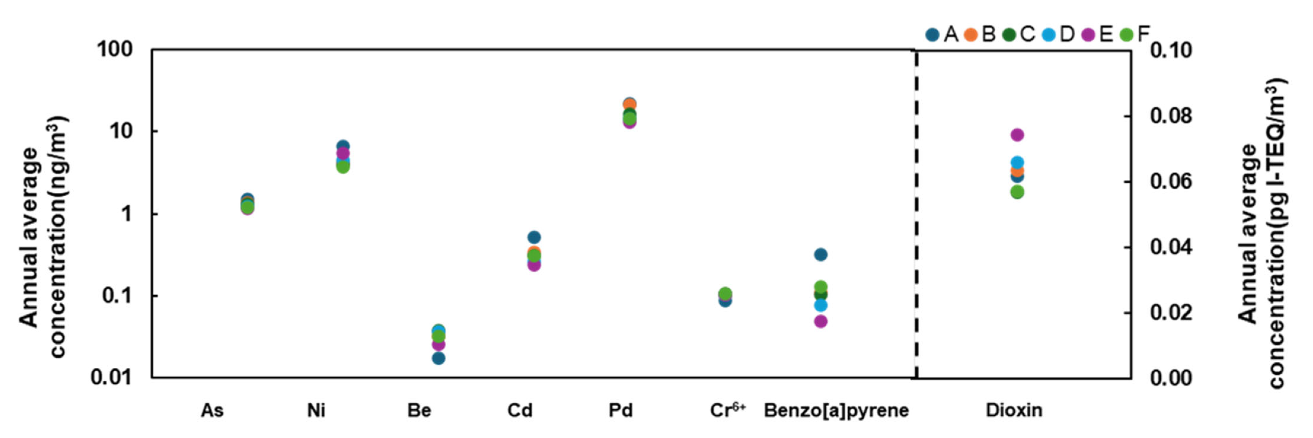 3.3. Analysis of Particulate Matter Heavy Metals and Dioxin Monitoring Data