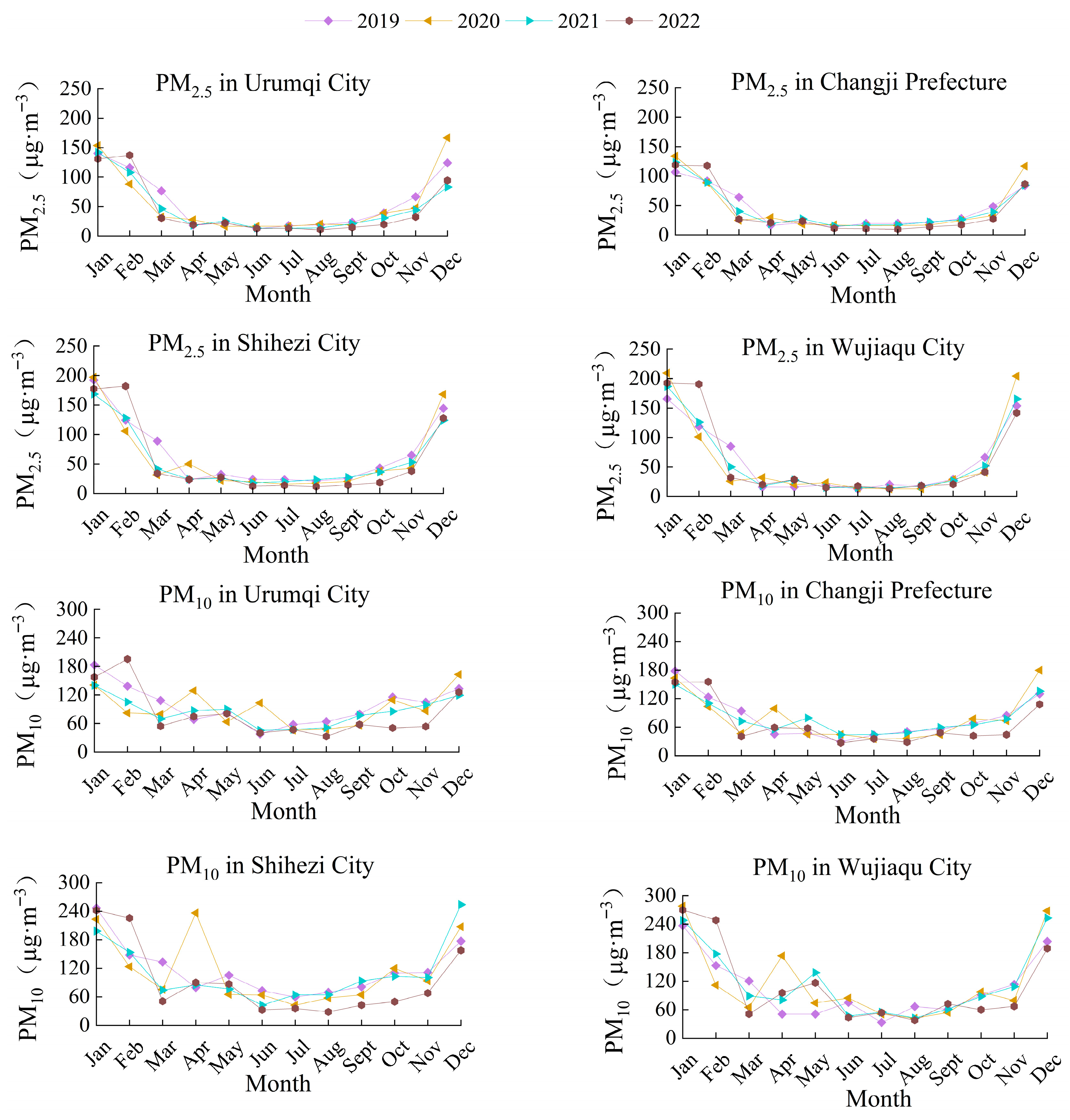 - Feng, H. Impact of epidemic prevention and control measures on atmospheric particulate concentration and distribution in Urumqi. Environ. Pollut. Control. 2021, 43, 606–610. [Google Scholar]
