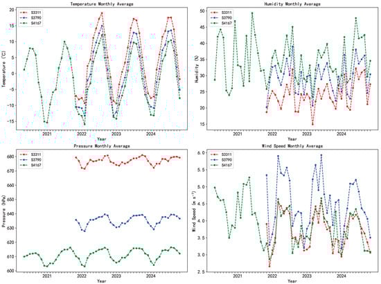 Monthly average data chart of meteorological elements at S3311, S3790 and S4167.