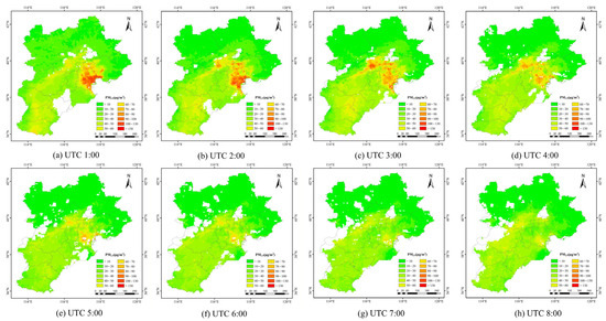 Figure 13. PM2.5 concentration process in the BTH region from 1:00 to 8:00 UTC on 22 September 2019.