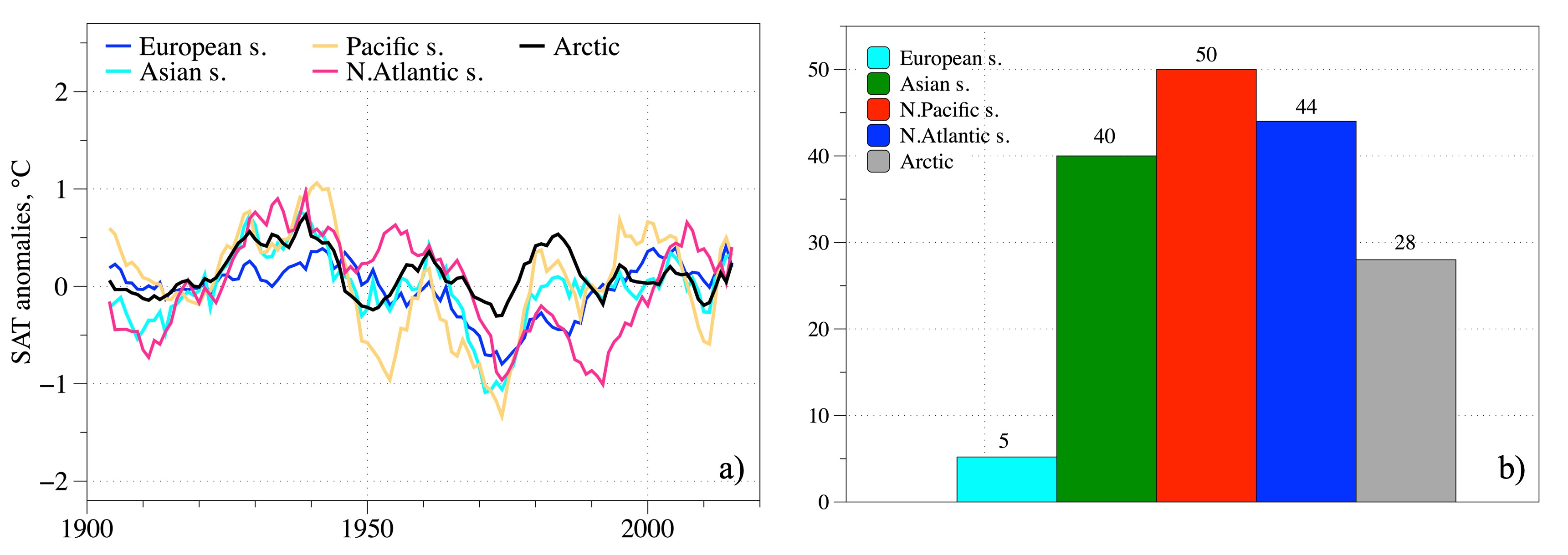 Bokuchava, D.D.; Semenov, V.A.; Aldonina, T.A.; Akperov, M.; Shtol, E.Y. Contribution of Leading Natural Climate Variability Modes to Winter SAT Changes in the Arctic in the Early 20th Century. Atmosphere 2025, 16, 1391. https://doi.org/10.3390/atmos16121391