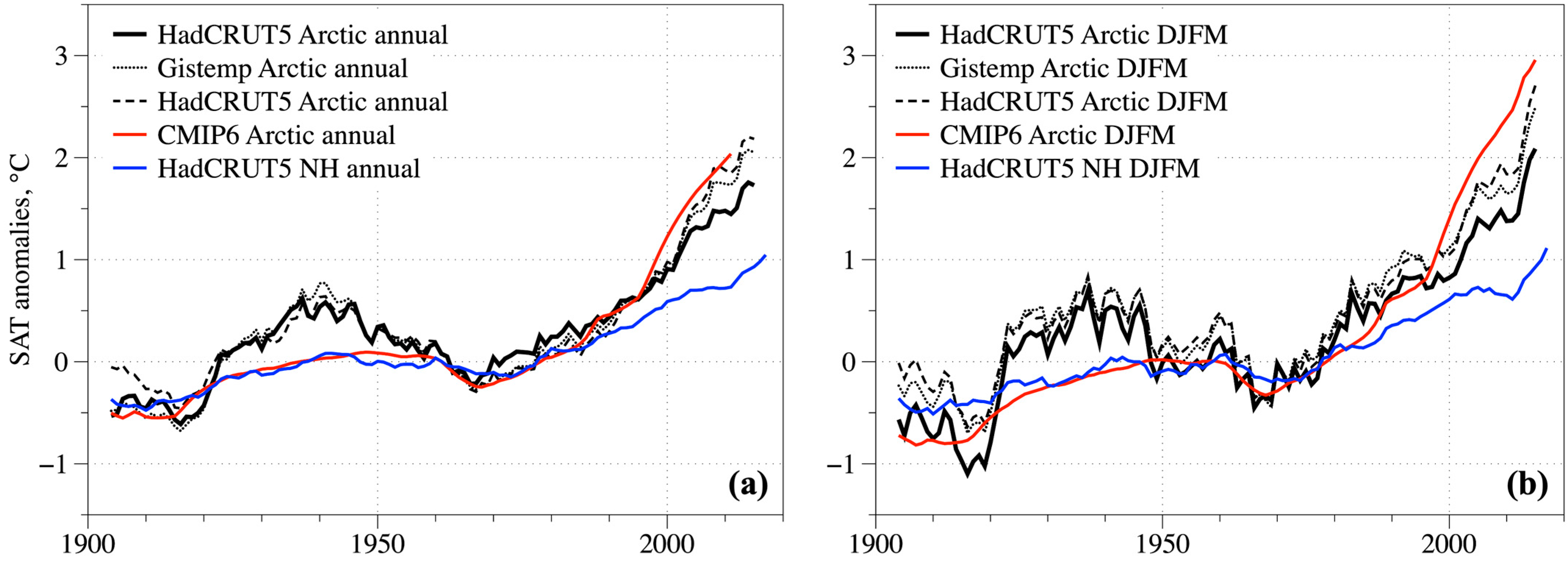 - Latonin, M.M.; Bashmachnikov, I.L.; Bobylev, L.P.; Davy, R. Multi-model ensemble mean of global climate models fails to reproduce early twentieth century Arctic warming. Polar Sci. 2021, 30, 100677. [Google Scholar] [CrossRef]