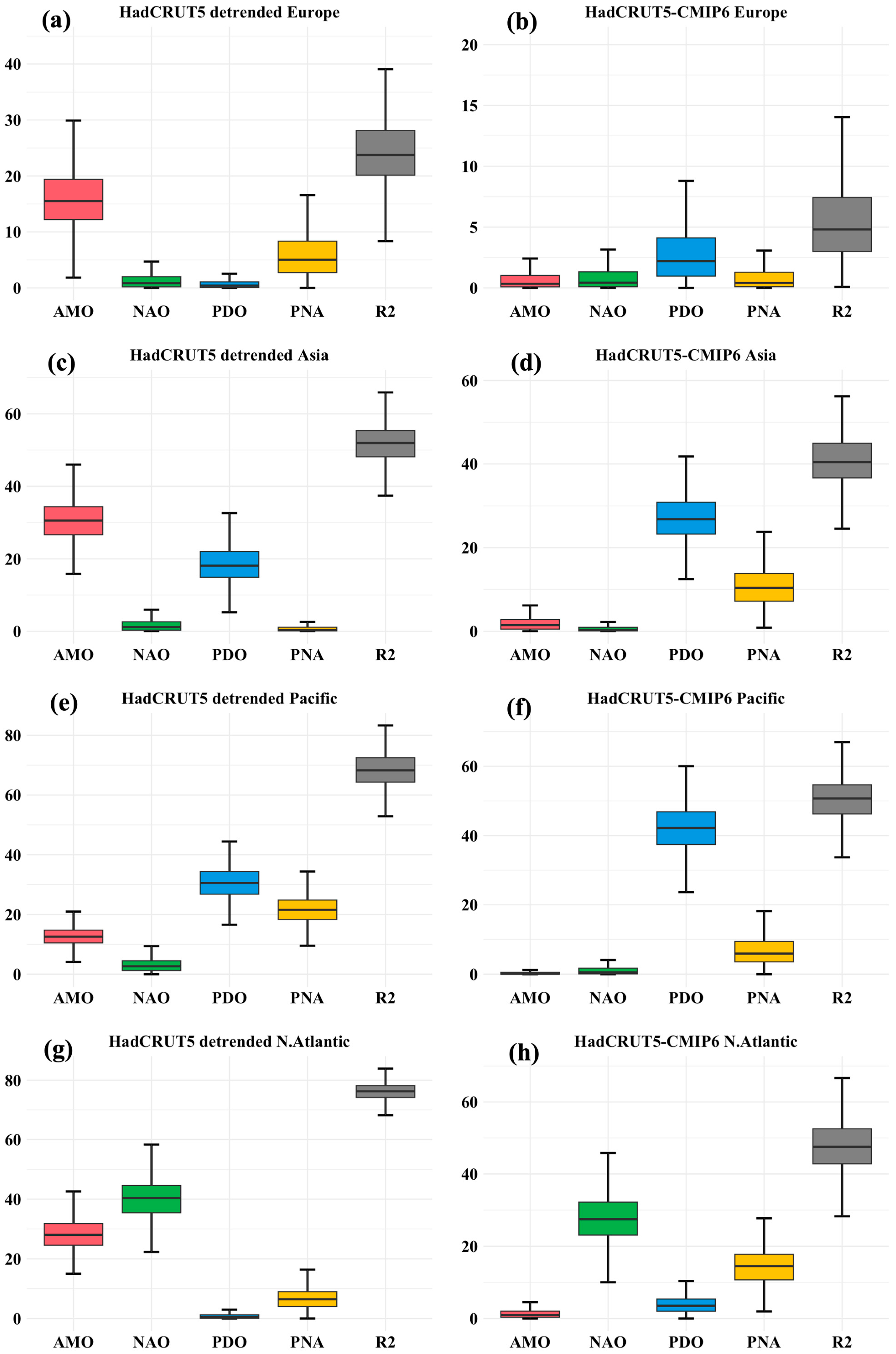 - Chen, X.; Dai, A. Quantifying contributions of external forcing and internal variability to Arctic warming during 1900–2021. Earth’s Future 2024, 12, e2023EF003734. [Google Scholar] [CrossRef]