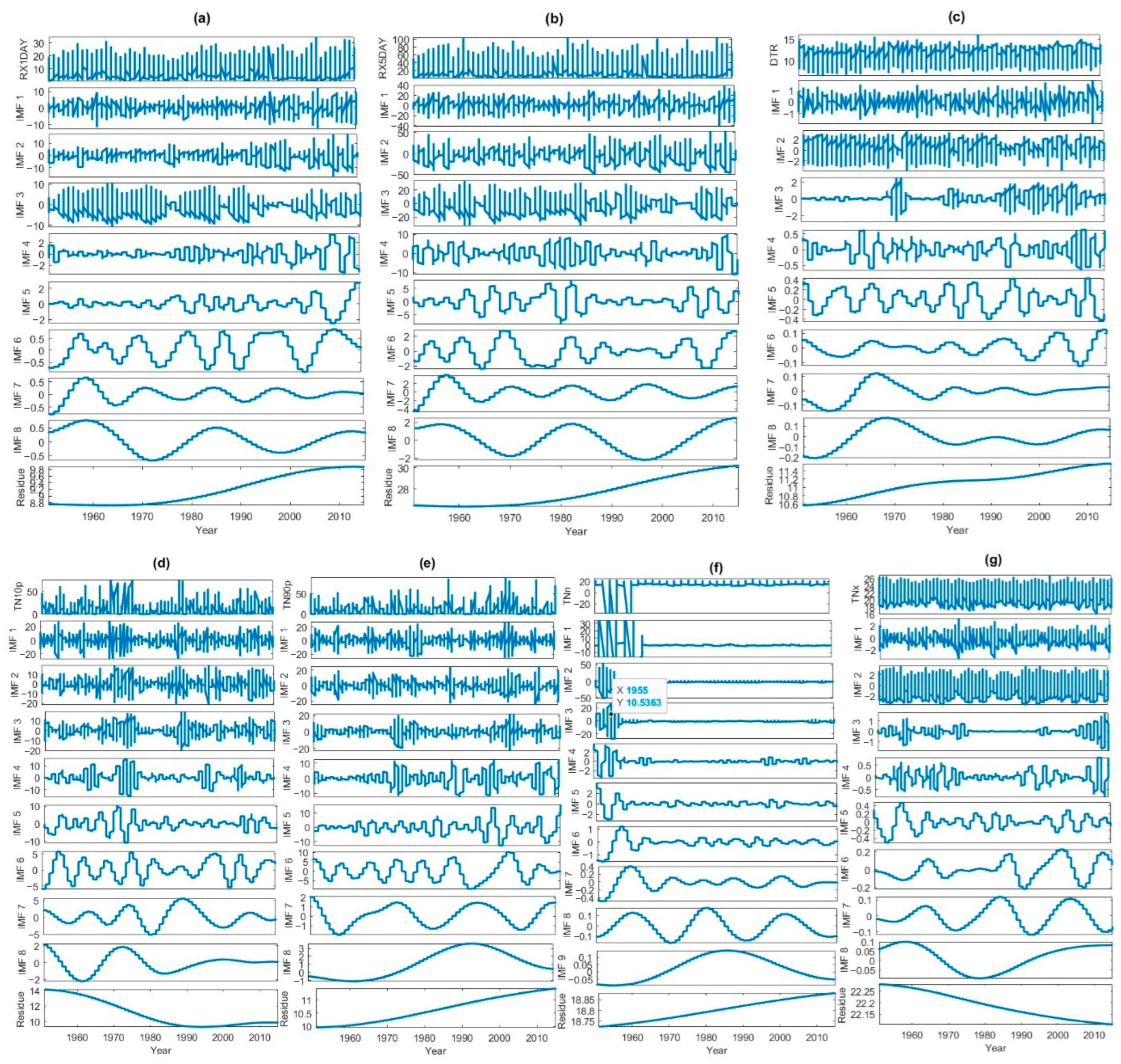- Adarsh, S.; Plocoste, T.; Nourani, V. Application of Hilbert Huang Transform Framework for Characterizing the Multiscale Properties of Air Temperature in India over a Century. Pure Appl. Geophys. 2025, 182, 3341–3371. [Google Scholar] [CrossRef]