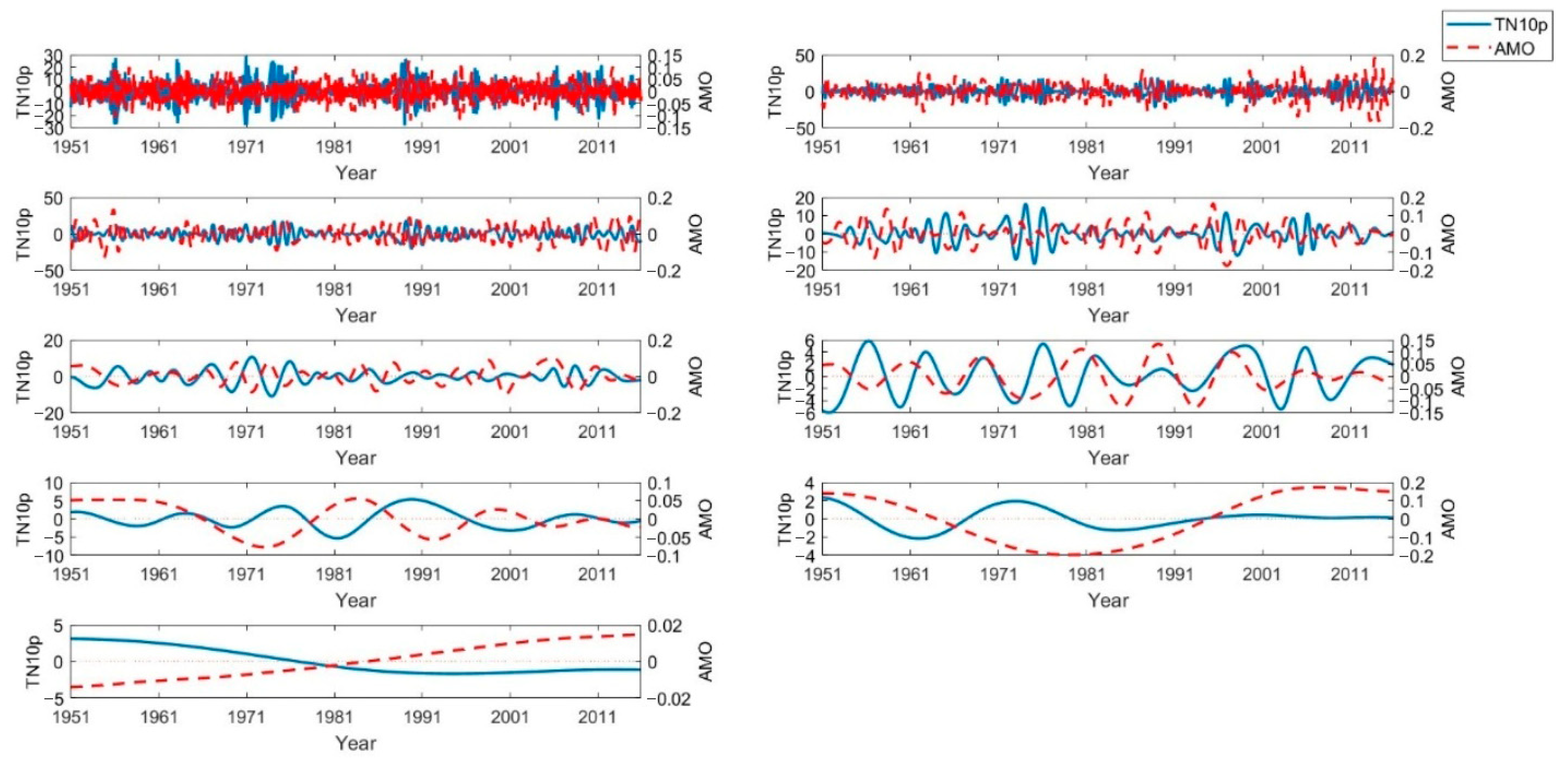 | AMO | RX1 | 0.112 | NAO | RX1 | −0.044 |