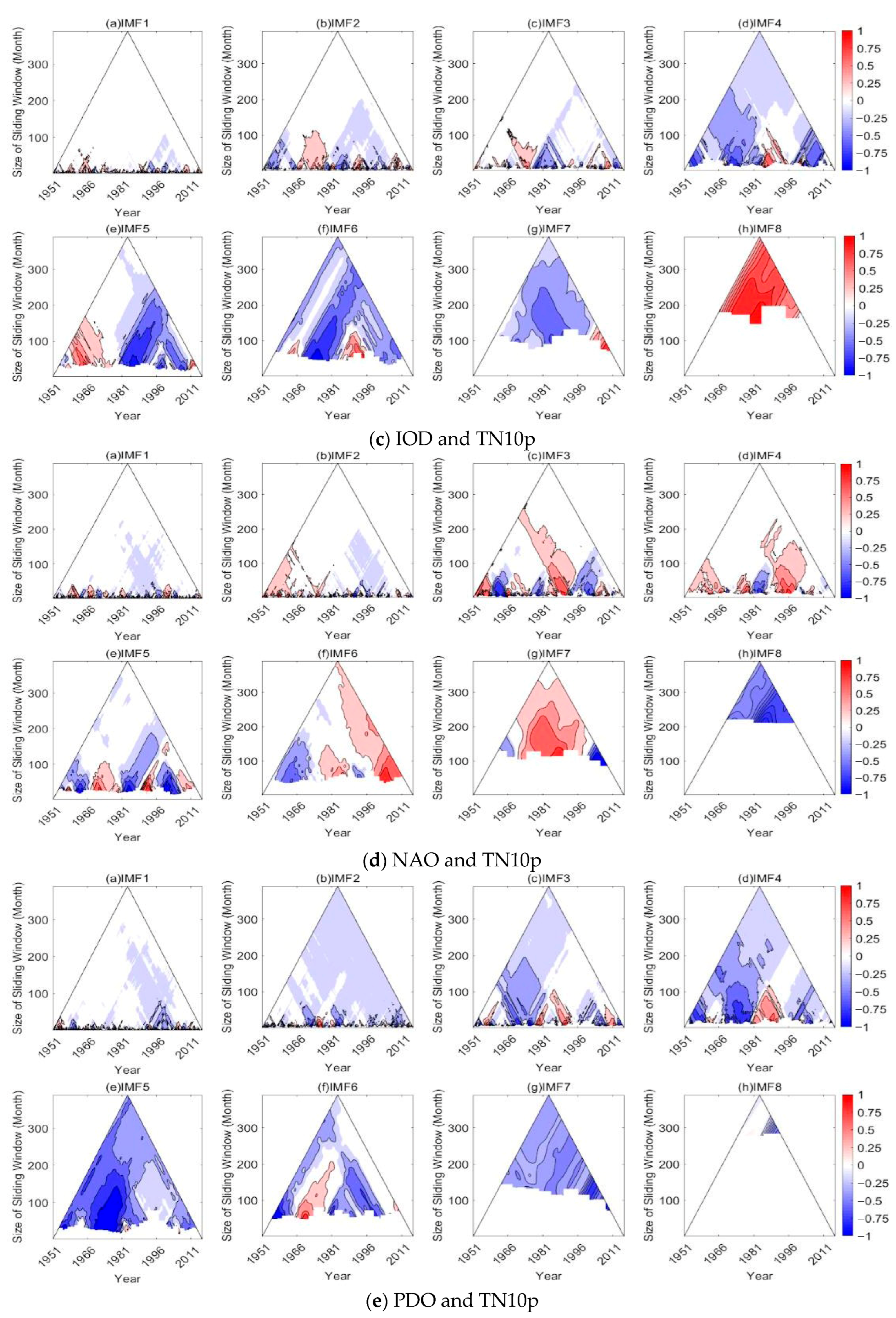 - Chen, X.; Wu, Z.; Huang, N.E. The time-dependent intrinsic correlation based on the empirical mode decomposition. Adv. Adapt. Data Anal. 2010, 2, 233–265. [Google Scholar] [CrossRef]