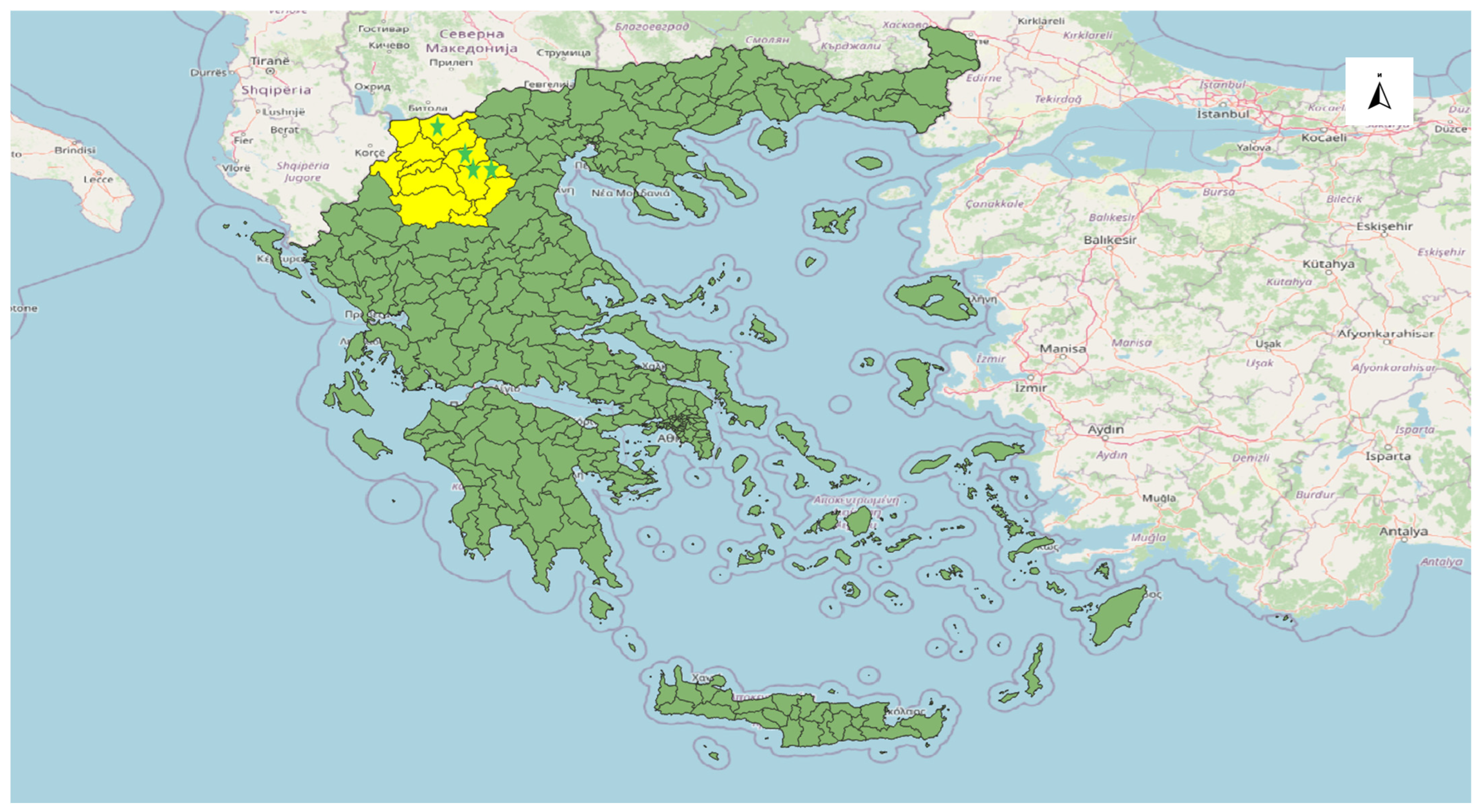 2 in areas influenced by lignite combustion—underscore the relevance of examining pollutant–health associations in Western Macedonia. This scientific context motivates the objectives of our study, while the detailed methodology is presented in the dedicated