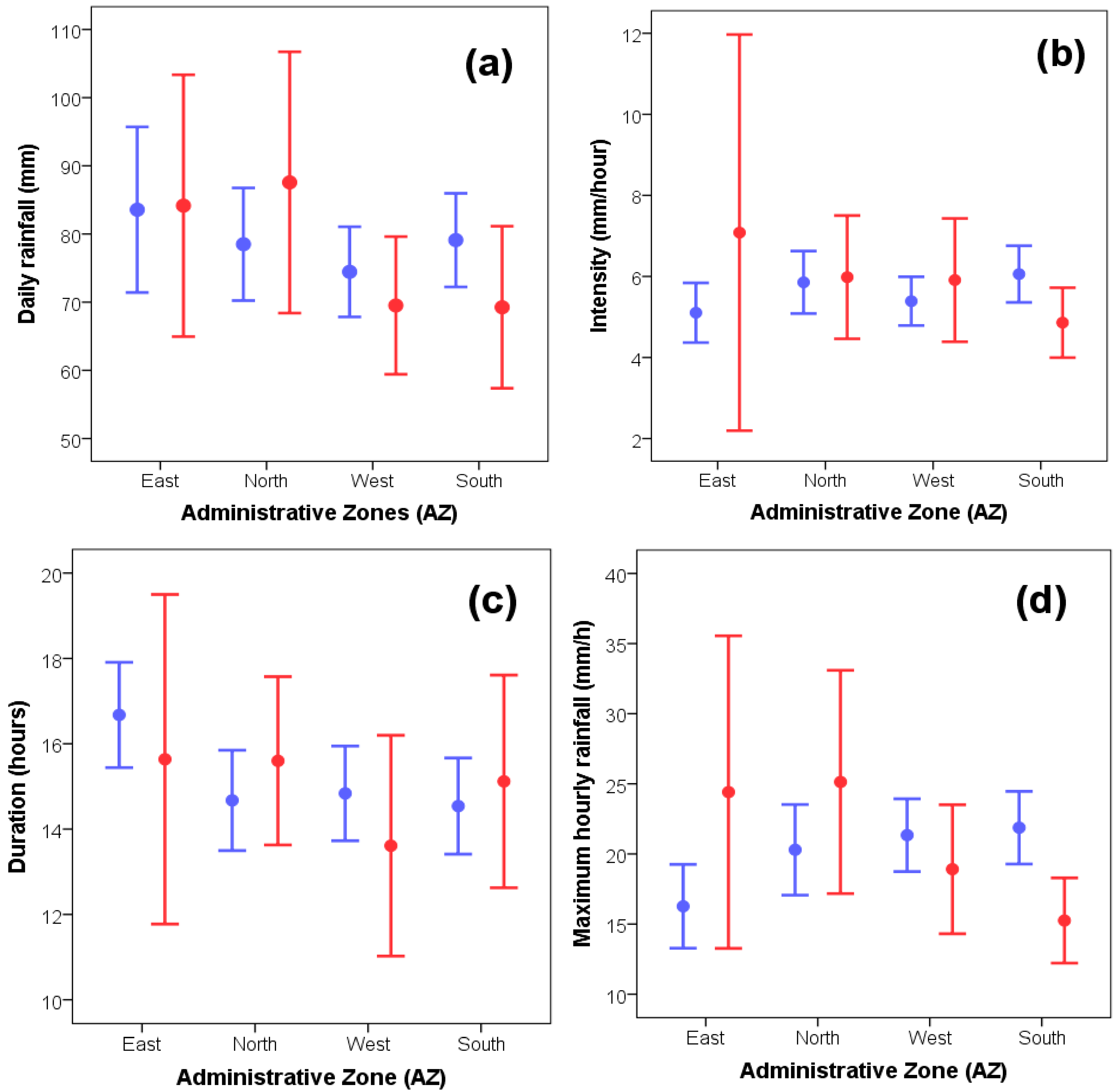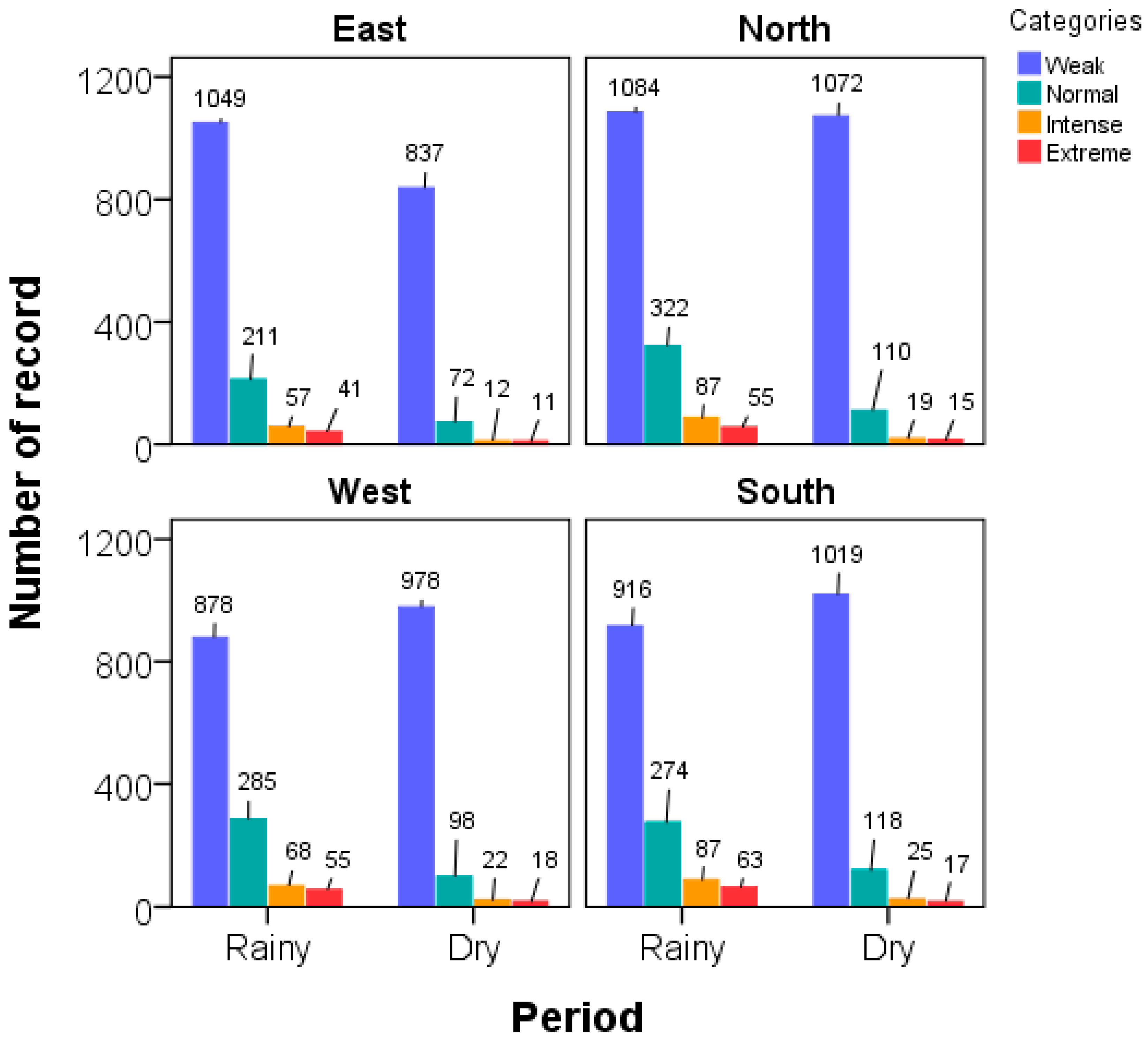 3.2. Distribution of Rainfall Events in Natal by Administrative Zone