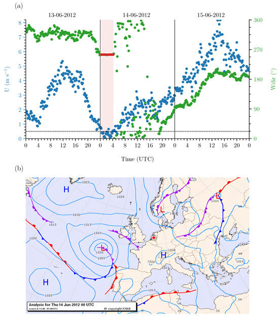 33]. The authors classified the majority of fog events as radiation fog (63.4%), occurring under stable, stratified conditions in the lower atmosphere. Moreover, these fog events primarily occurred between 18 and 8 UTC, during the months of January, February, and March, as well as August, September, and October. Although wind vane stalling was less frequent during winter months, this pattern reflects the relatively high frequency of wind vane stalling that we observed in March, August, September, and October, also occurring between 18 and 8 UTC. Therefore, fog formation may also serve as an indicative variable for machine-learning methods towards identifying wind vane stalling events.