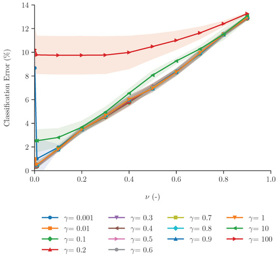 25]. Due to the single class, we evaluate the performance of OCSVM considering the relative mean error (normalised by the number of cases) for classifying stalling data points. We explore this method’s aptitude by varying the (