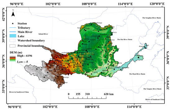 Map of meteorological station distribution in the Yellow River Basin.