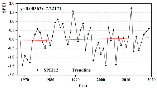 Variation in SPEI12 in the Yellow River Basin from 1968 to 2019.
