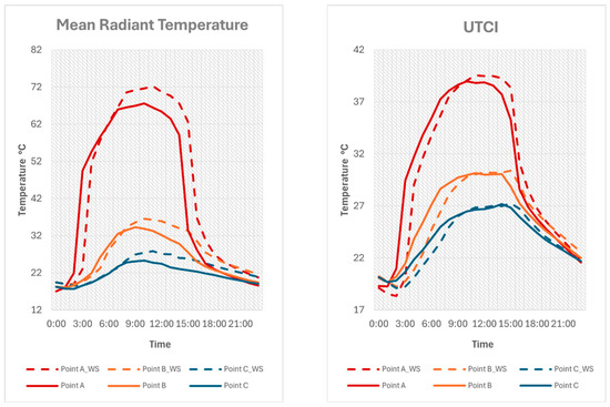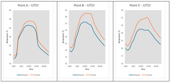 To evaluate outdoor thermal comfort, the Universal Thermal Climate Index (UTCI) was applied, providing a standardized measure that integrates air temperature, wind speed, humidity, and radiant temperature. The Universal Thermal Climate Index (UTCI) has been used for assessing outdoor thermal climate. It incorporates factors such as air temperature, wind speed, humidity, and radiant temperature to provide a comprehensive measure of thermal stress experienced by individuals. As a standardized metric, UTCI enables comparisons across various climates and regions, supporting public health recommendations, infrastructure planning, and climate adaptation efforts [