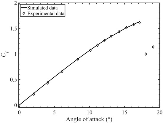 Figure 2. The validation result of the Cl with angle of attack.