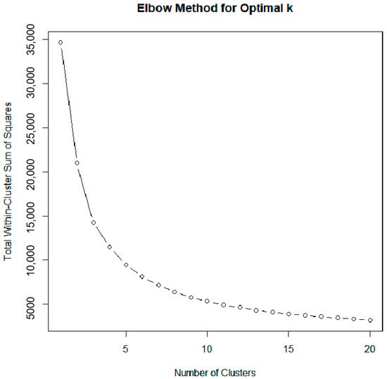 Optimum number of clusters in K-means clustering based on the total within-cluster sum of squares.