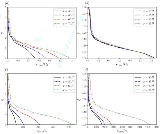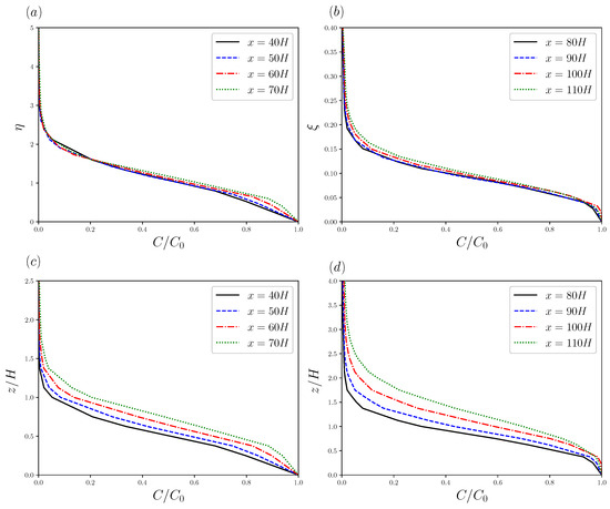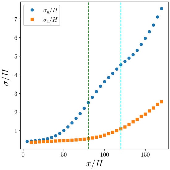 - In this work, an ideal topography has been used. The ground is modeled as a flat surface. In reality, the area around the landfill is not flat since it is made of hills, valleys, roads, and buildings. Nevertheless, considering the characteristic size of the canopy , the ratio can be much smaller than 1. In that case, the site topography can be modeled as a roughness and be taken into account in a single parameter, namely, the turbulent Schmidt number for the mean concentration. The foreseen effect is that this will change the boundaries of the turbulent region so that the mean concentration will be self-similar for some x smaller than , but it is unlikely that this will affect methane dispersion in the far field. Of course, this will not be true if the size of the landfill is comparable with the characteristic size of the topography.