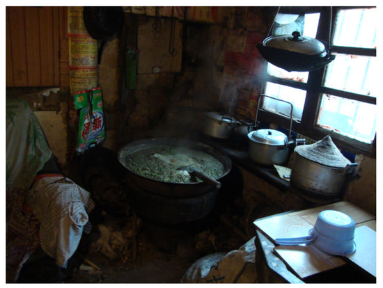 Hutou village, the highest lung cancer mortality rate, is located in the southeast of Xuanwei, Yunnan Province, China (Figure 1). Yantang mine is the nearest coal mine, about 1.4 km away from the village and the main coal source for Hutou. Xize village, having low or no reported lung cancer cases, is located in the west of Xuanwei, and is a mountainous agricultural community. The Xize residents usually use biomass as fuel for cooking and preparing pigwash (AKA, Pigswill a viscous liquid pig food). Since 1973, many Xuanwei residents have used portable stoves or stoves with ventilation through an underground chimney pipe [14]. Almost every family in Xuanwei raises pigs, so people from Hutou and Xize villages cook a large amount of pigwash every day (Figure 2).