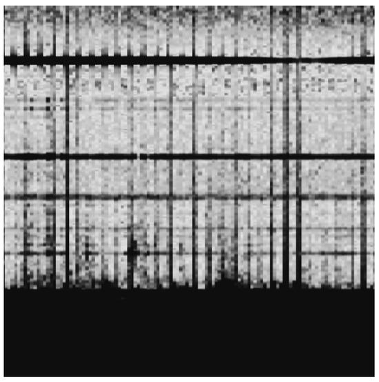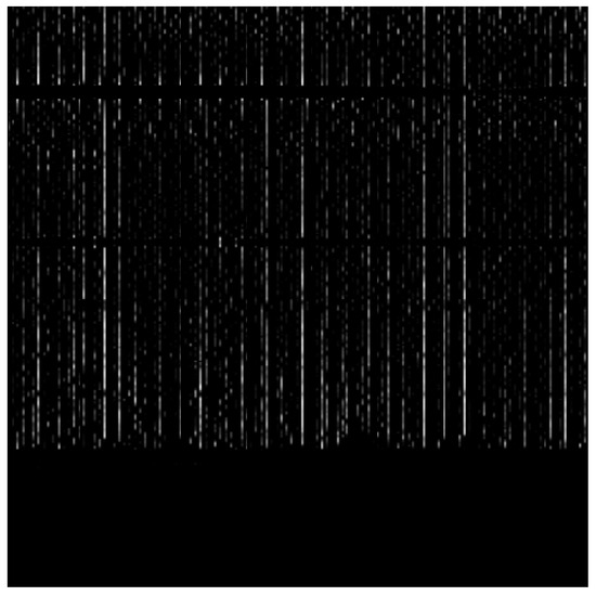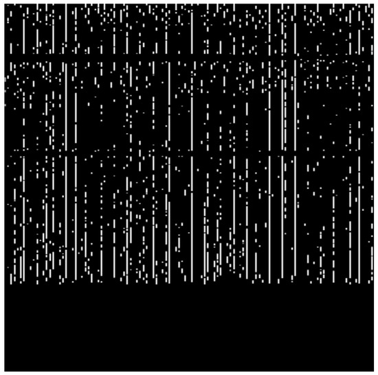 In practical applications, the choice of the threshold in the binarization operation has a significant impact on the results. To simplify and improve computational speed, the binarization operation in this paper is performed by setting a fixed threshold of , converting the grayscale values in the image into black and white binary values. The selection of this threshold value is referenced from [19]. The result after binarization of Figure 5 is shown in Figure 6.