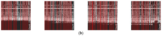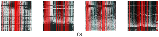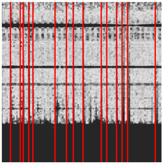 After clustering, the column pixels are grouped into two categories: lines and non-lines. The line class is marked in red on the grayscale. Based on the results of K-means clustering, the marked result on the grayscale image is shown in Figure 8.
