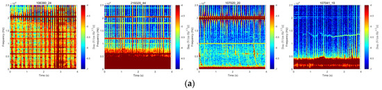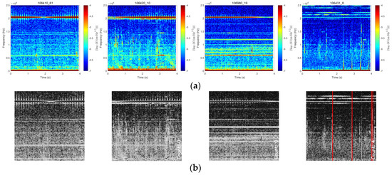 Non-EMP sequences. (a) Four-second (4 s) spectrograms; (b) Line recognition results.