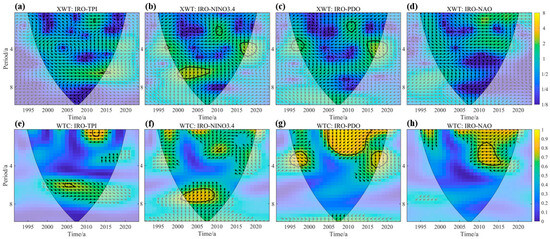 where S denotes the smoothing operator. The WTC value R2 ranges from 0 to 1 and can be understood as a localized correlation coefficient within the time–frequency domain, with higher values indicating a stronger correlation.