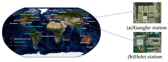 Figure 1 shows the site map of the Total Carbon Column Observing Network (TCCON), an international initiative dedicated to ground-based measurements of atmospheric greenhouse gases [35]. Each TCCON site performs solar infrared spectral observations using ground-based Fourier Transform Infrared (FTIR) spectrometers, following standardized protocols. By applying a unified retrieval technique to the observed data, TCCON provides precise retrieval of various greenhouse gases, including CO2, CH4, N2O, CO, HF, H2O, HDO, and others. The network delivers real-time, continuous, and accurate column concentration measurements of these greenhouse gases on a global scale [36]. TCCON observations serve as reference standards for improving satellite algorithms and validating models, making them a critical dataset for CO2 retrieval research. This study uses data from the Xianghe and Hefei sites, spanning from 2019 to 2021, to validate the retrieval results. The research on carbon dioxide retrieval holds significant importance for China. The Xianghe and Hefei sites are located in different geographical regions of China, representing typical climatic and atmospheric conditions of the eastern and central parts of the country, respectively. These two sites have been widely used in several related studies.