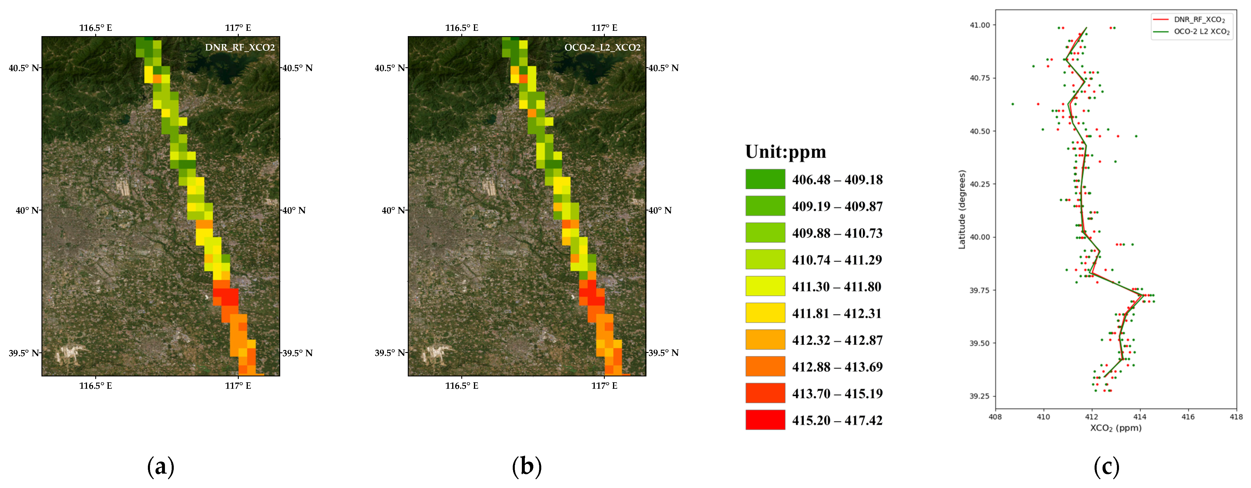 - Compared with the existing OCO-2 satellite products, the retrieval method in this paper can significantly reduce systematic errors and demonstrates strong spatiotemporal adaptability, being able to accurately invert CO2 concentrations under different time and regional conditions, verifying its stability and reliability under various environmental conditions.