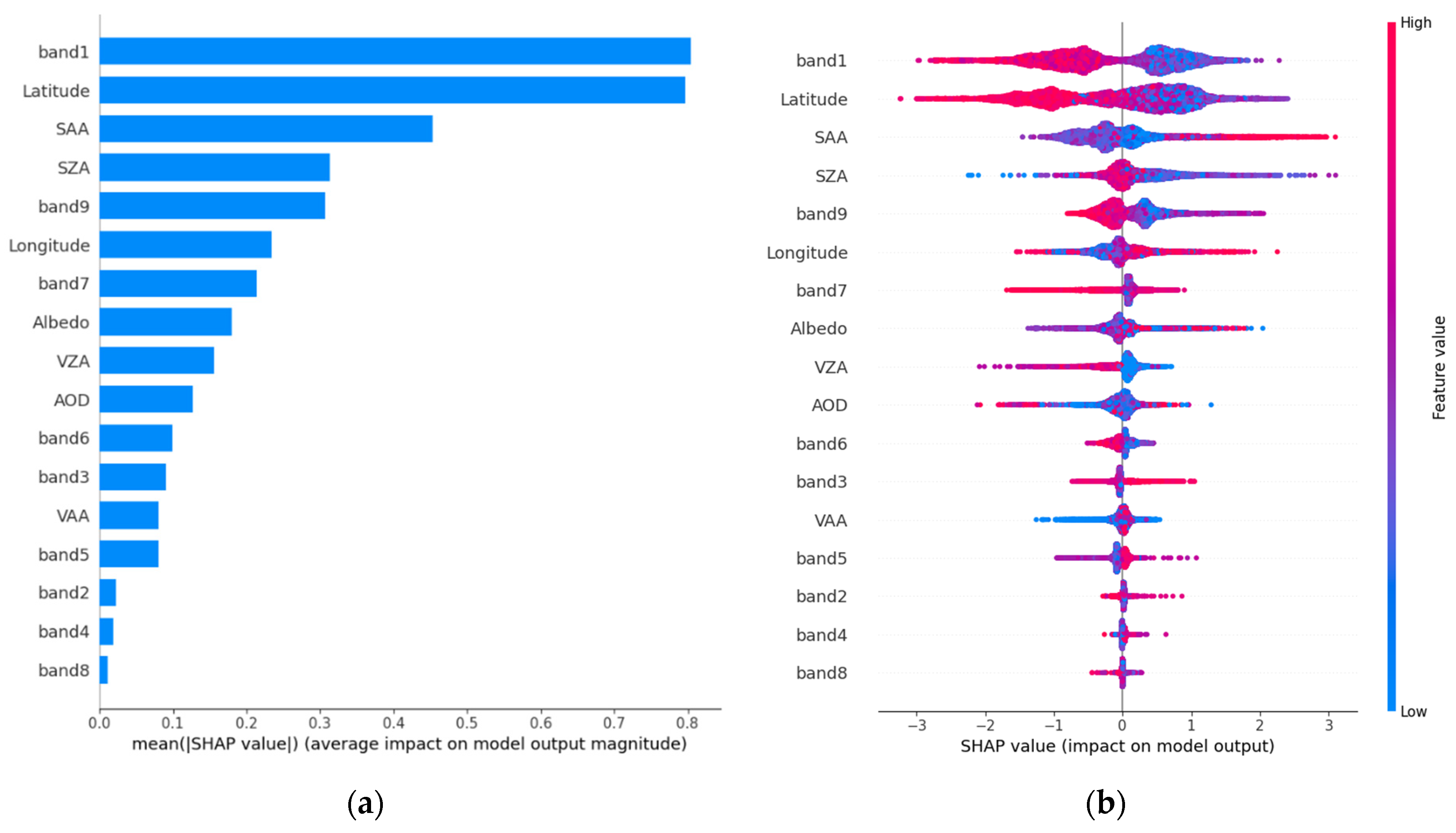 - Future research can further optimize the retrieval model by adding more feature variables (such as climate patterns, other satellite data) and improve machine learning algorithms to further enhance retrieval accuracy. Combining more satellite data (such as GOSAT, TanSat, etc.) and ground station data can enhance the diversity of the training set, further improving the robustness and accuracy of the model. At the same time, further improving the model’s spatiotemporal migration capability, especially its performance under extreme climatic conditions, will be a key direction for the future.