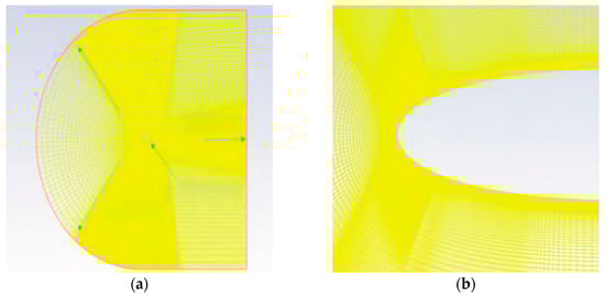 As shown in Figure 1a, the boundary conditions for the wing calculation are set as follows: the left-curved boundary, the upper and lower boundaries, and the right boundary are set as far-field pressure boundaries. The front and rear boundaries perpendicular to the paper surface are set as symmetry plane boundaries, and the wing is set as a no-slip wall.
