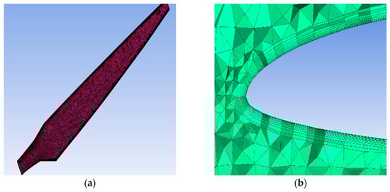 Blade model meshing: (a) blade surface mesh; (b) boundary layer mesh.
