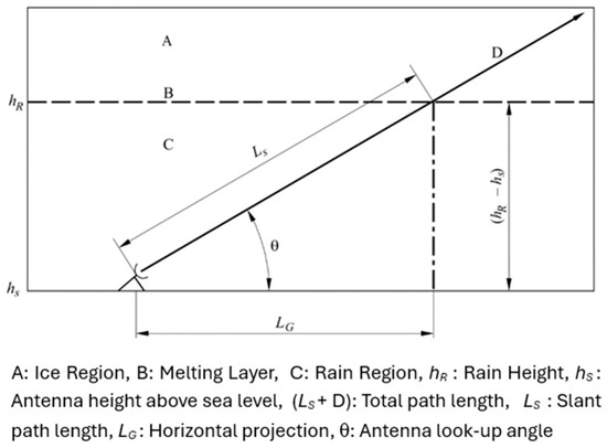 Schematic presentation of an Earth–space path showing rain height and parameters required to compute rain-induced attenuation [23].